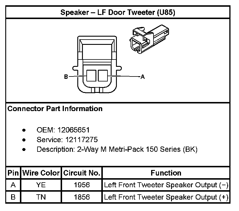 Speaker - LF Door Tweeter (With RPO Code U85):