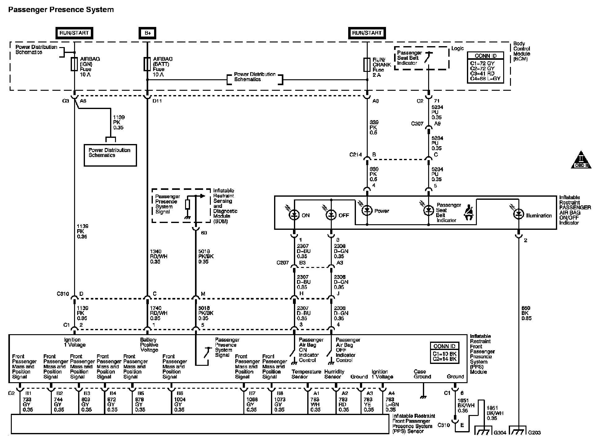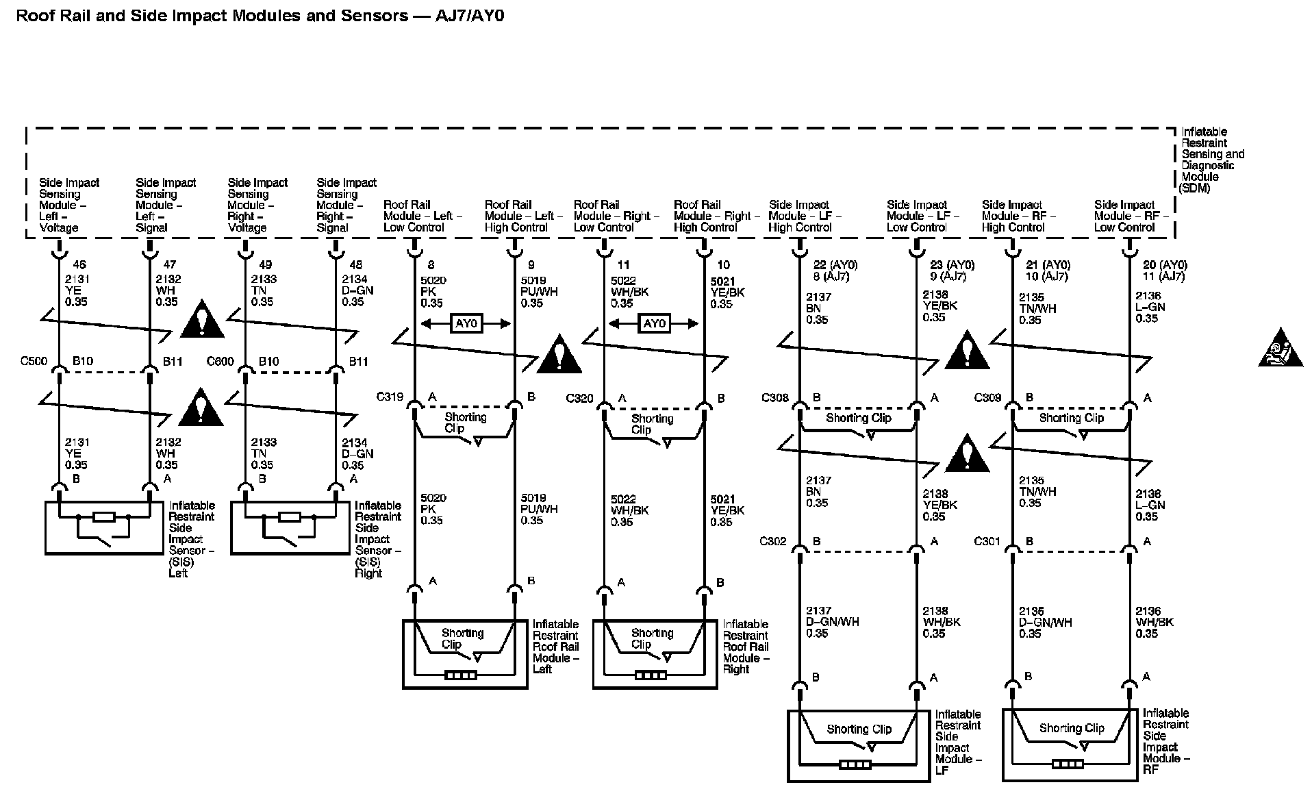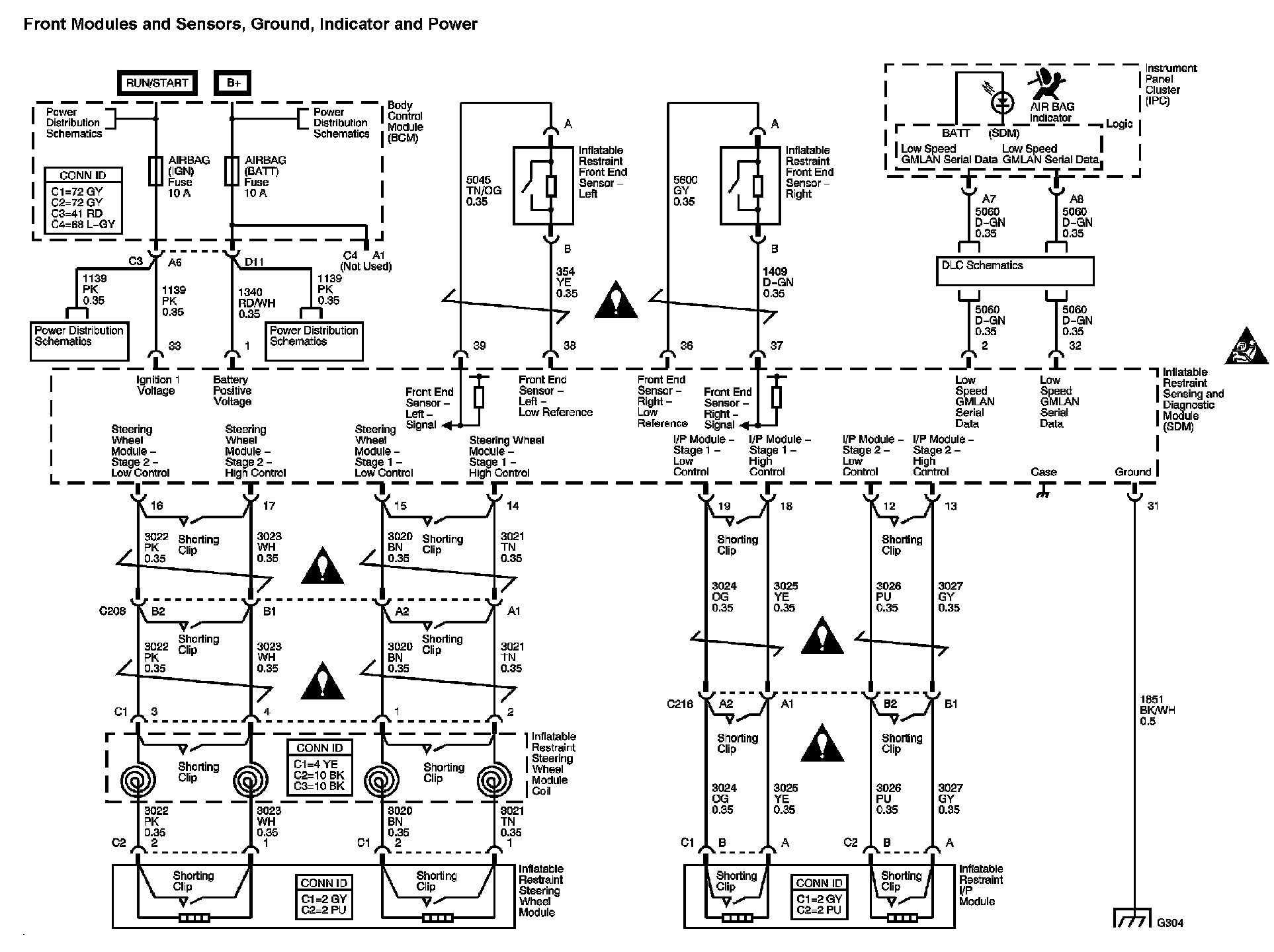 The locations for the Connectors, Grounds, Splices, and Grommets shown within these diagrams can be found via their at Vehicle Locations.