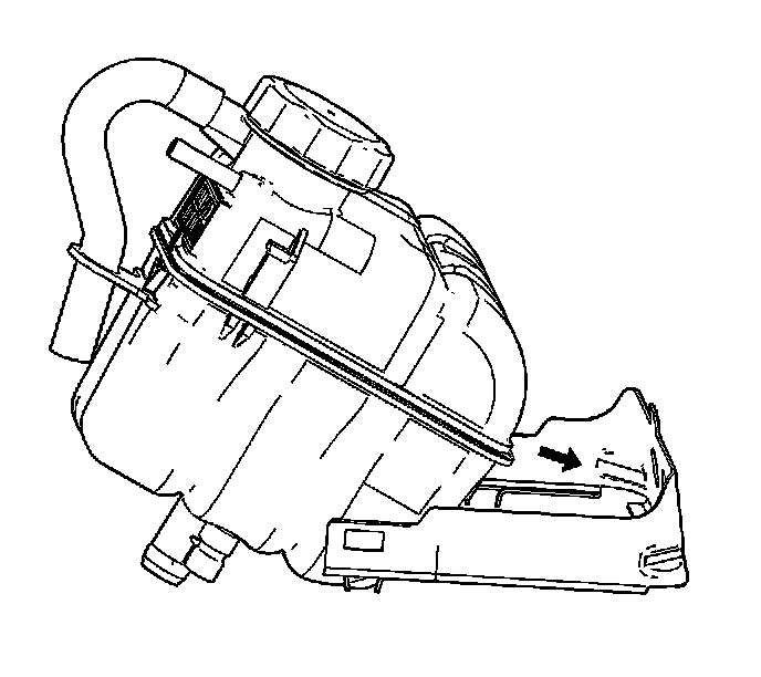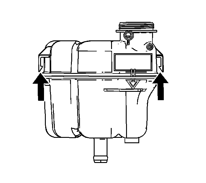 4. Flex the surge tank mounting tabs outward to release the surge tank from the bracket.