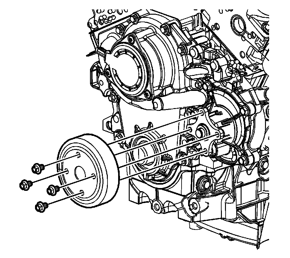 4. Remove the water pump pulley bolts and pulley.