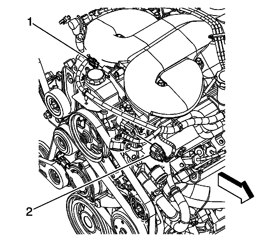 12. Disconnect the knock sensor (2) electrical connector.