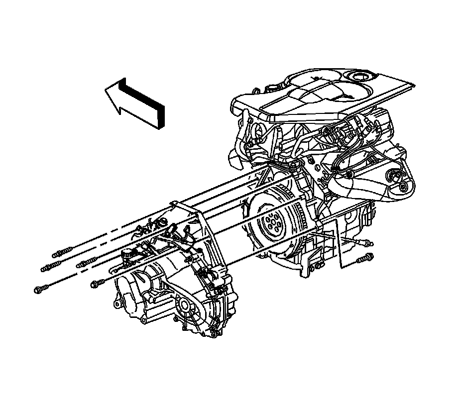64. Remove the remaining transaxle-to-engine bolts/studs if equipped with a manual transmission.