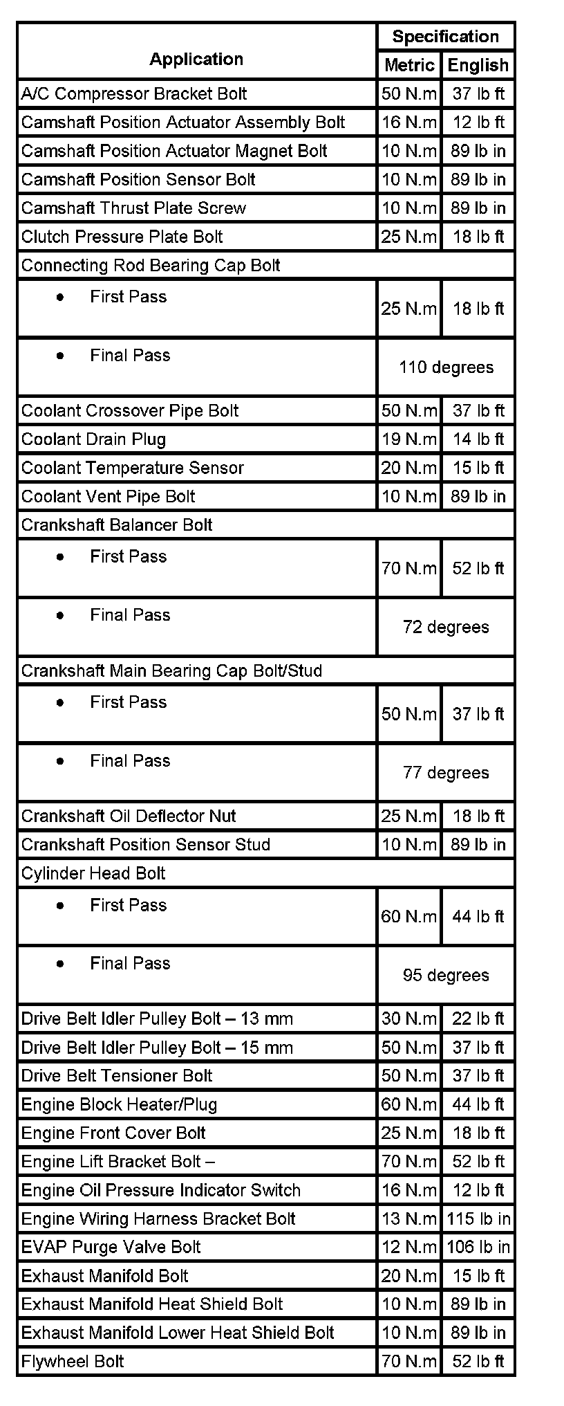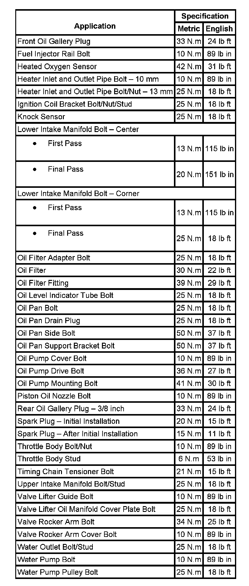 Fastener Tightening Specifications: