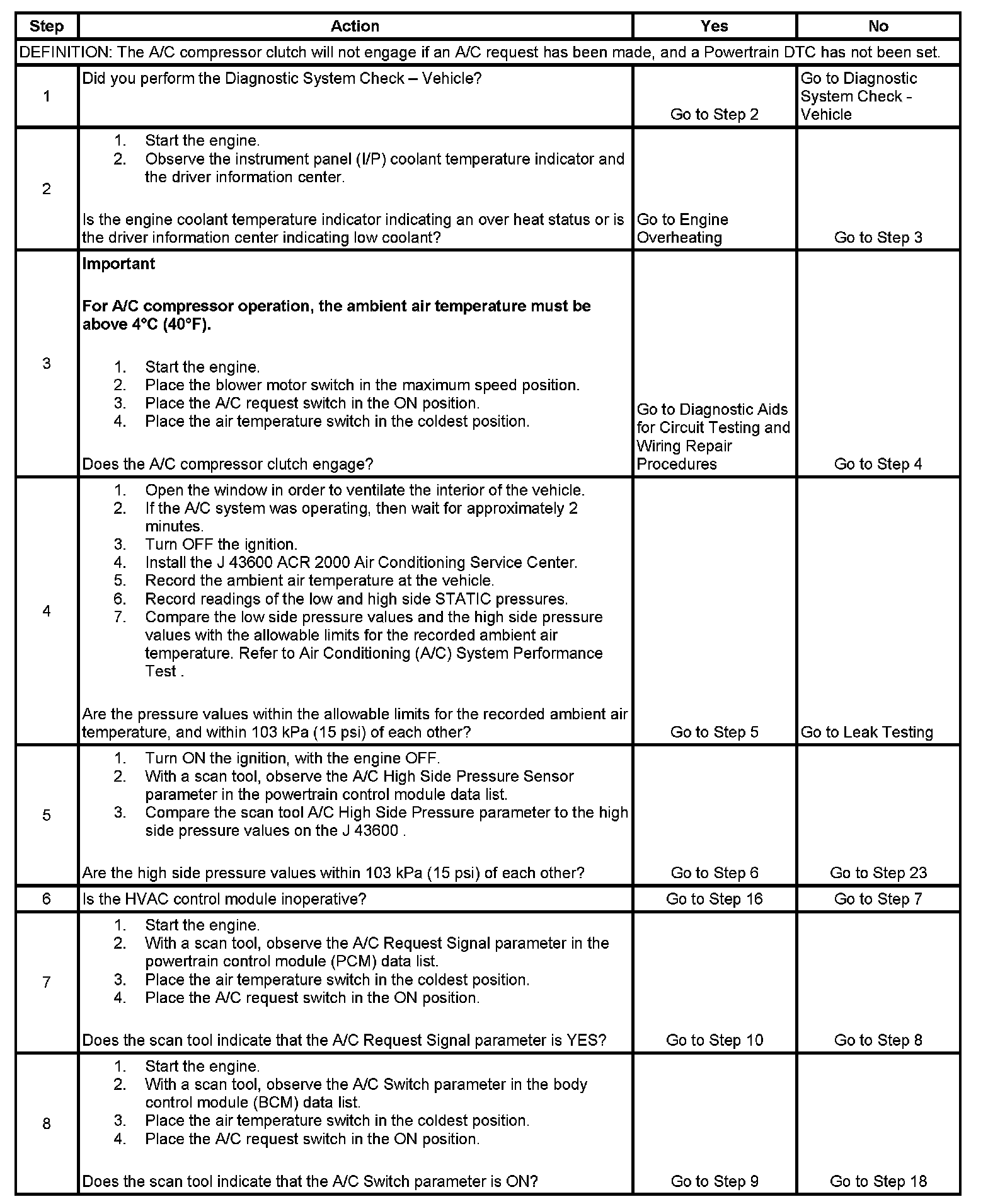 2. The A/C compressor relay output is disabled if engine coolant temperature is above 128°C (262°F). The instrument panel engine coolant indicator will indicate overheating.