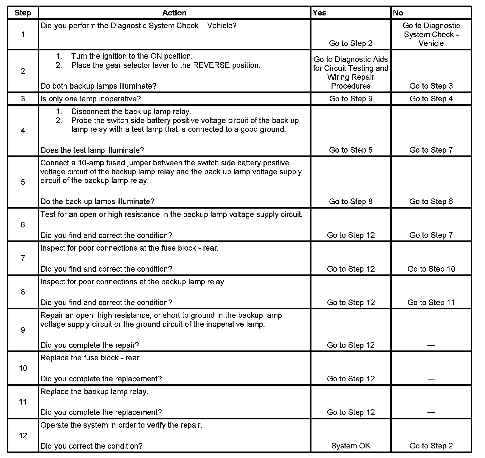 Backup Lamps Inoperative