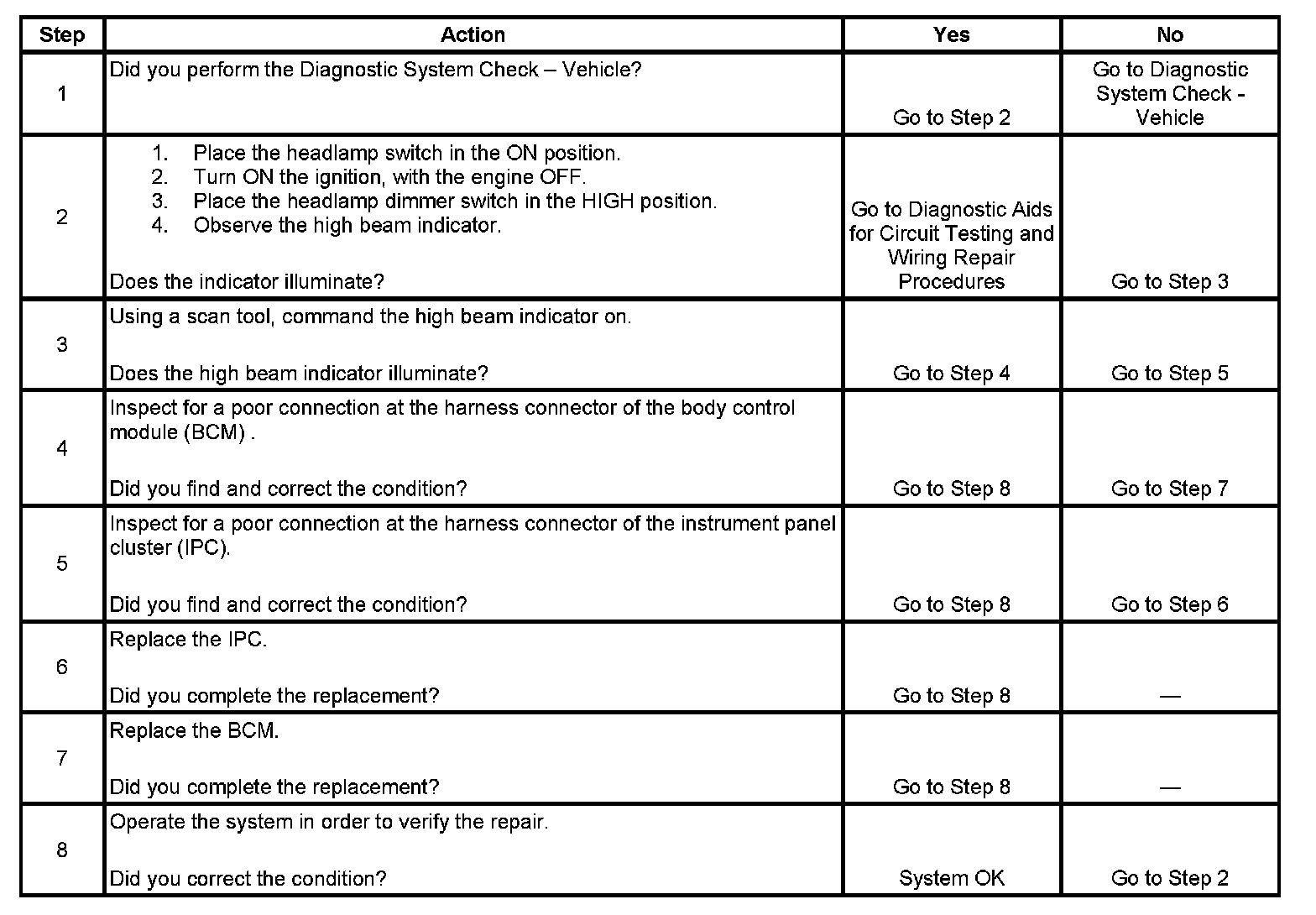 High Beam Indicator Inoperative