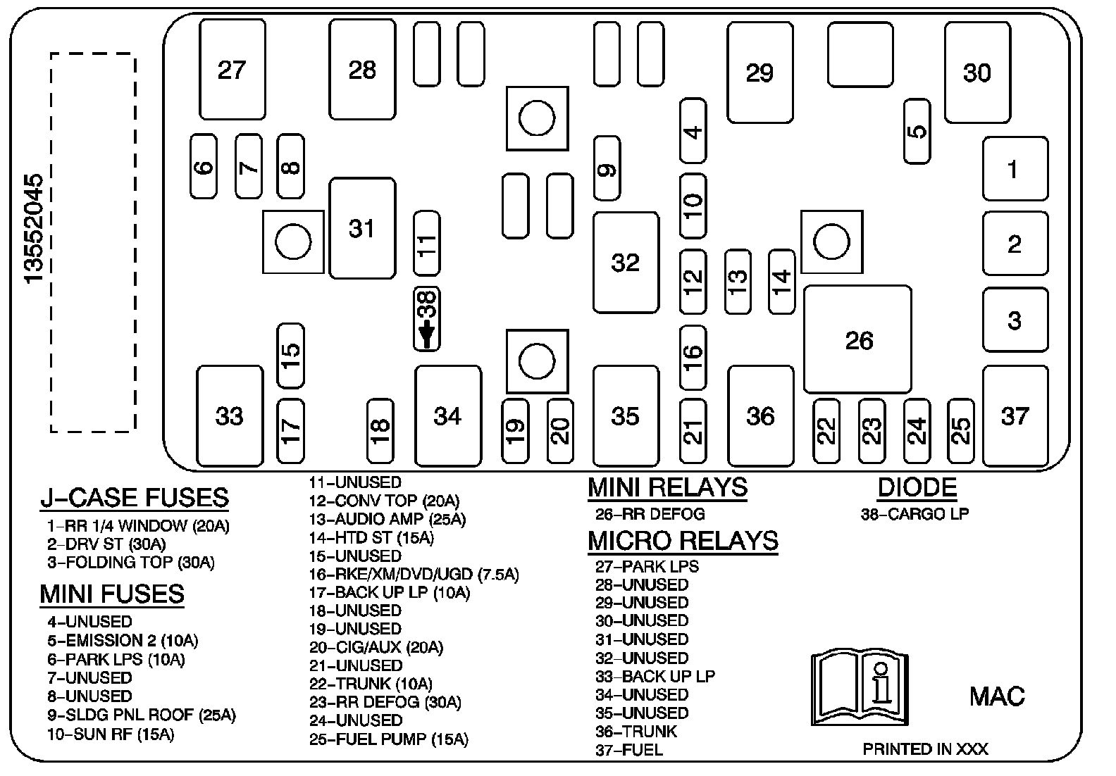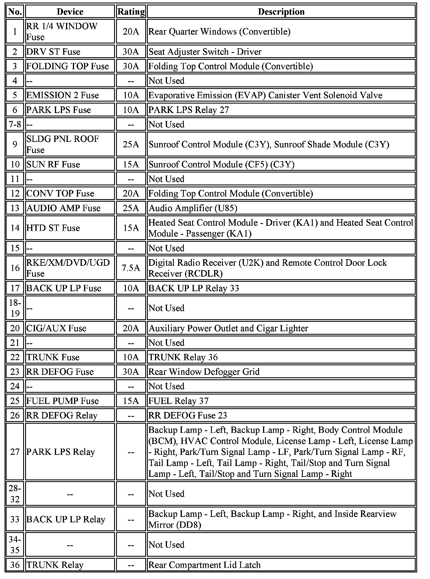 Fuse Block - Rear Label Usage Part 2 Of 2: