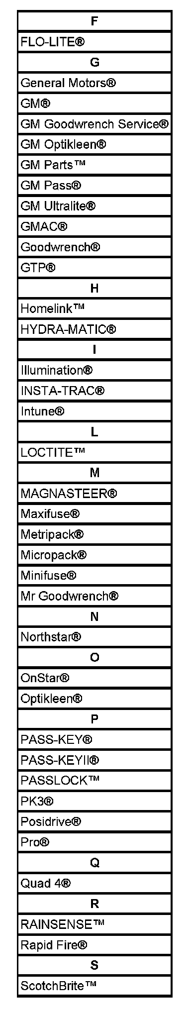 Listed are Registered Trademarks ((R)) or Non-Registered Trademarks (TM) which may appear in this service data.