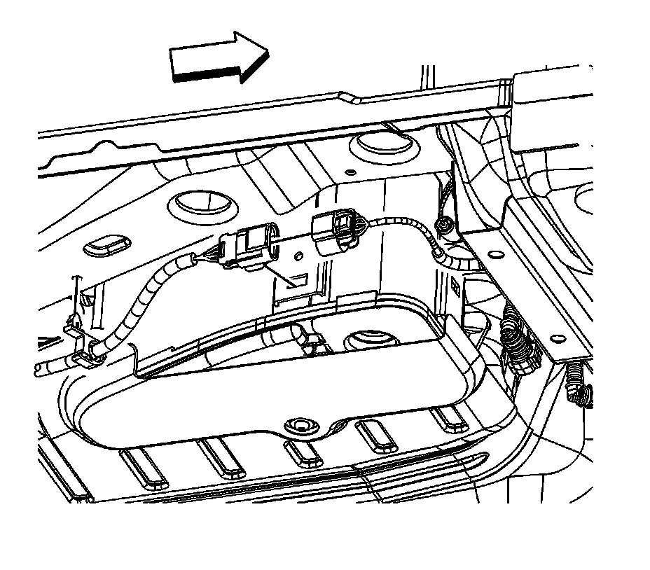 11. Disconnect the fuel tank jumper electrical connector from the underbody wiring harness.