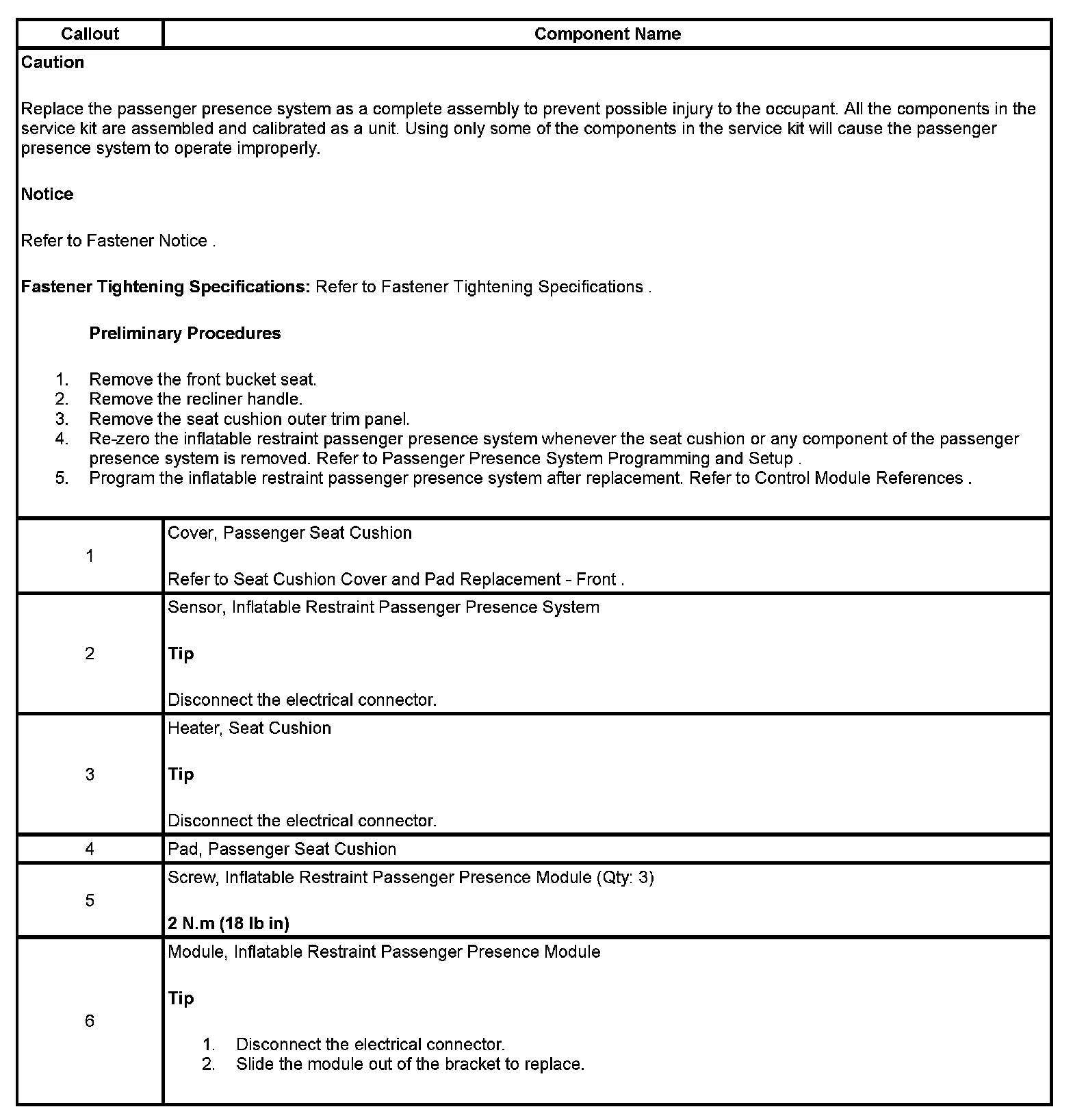 Inflatable Restraint Passenger Presence System Replacement - Front (With Heated Seat)