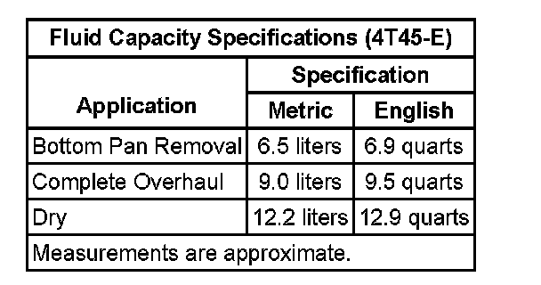 Fluid Capacity Specifications: