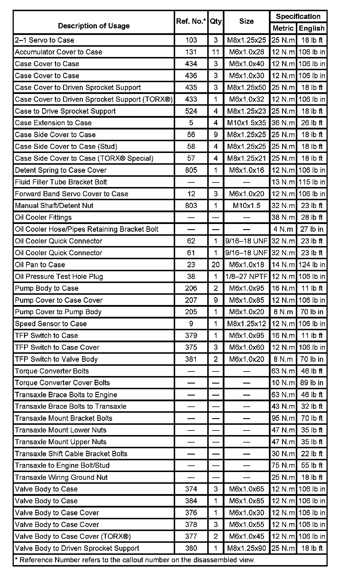 Fastener Tightening Specifications: