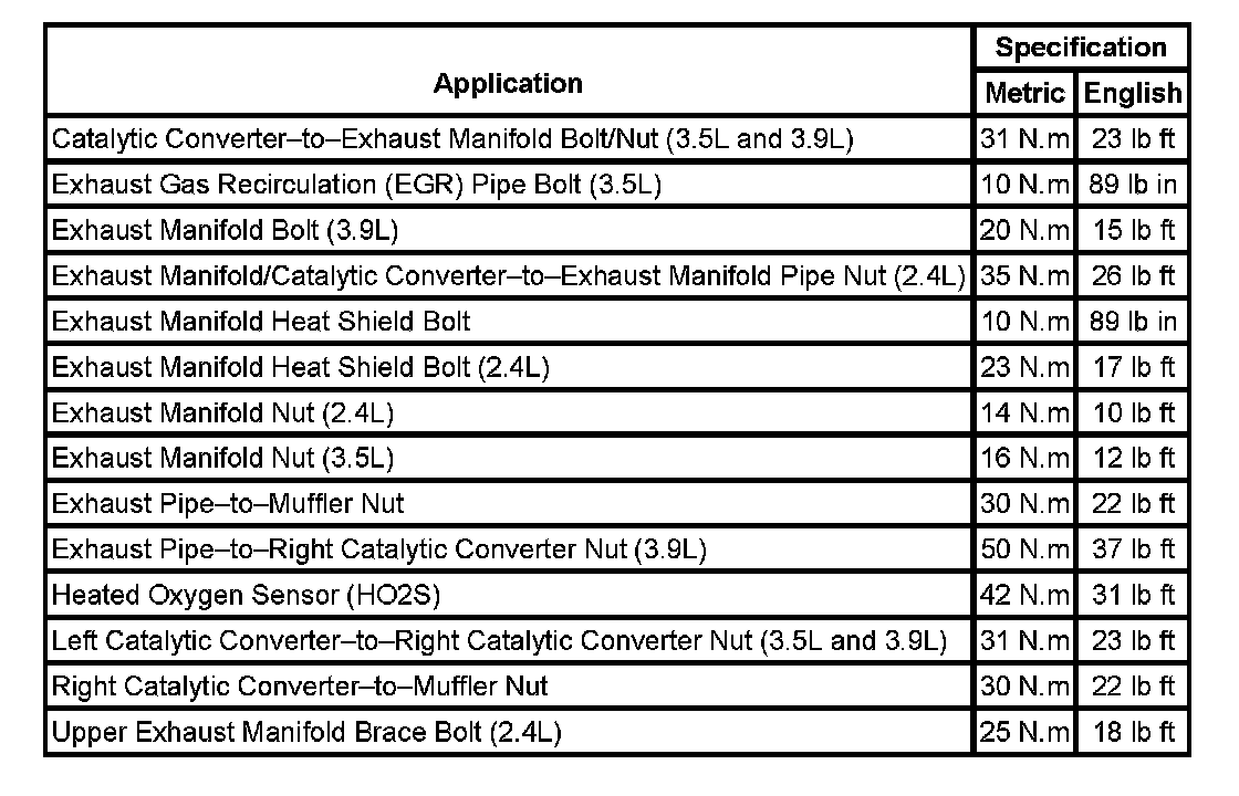 Fastener Tightening Specifications: