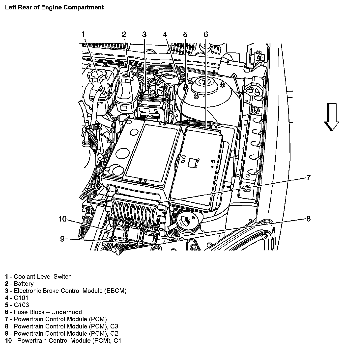 Left Rear Of Engine Compartment: