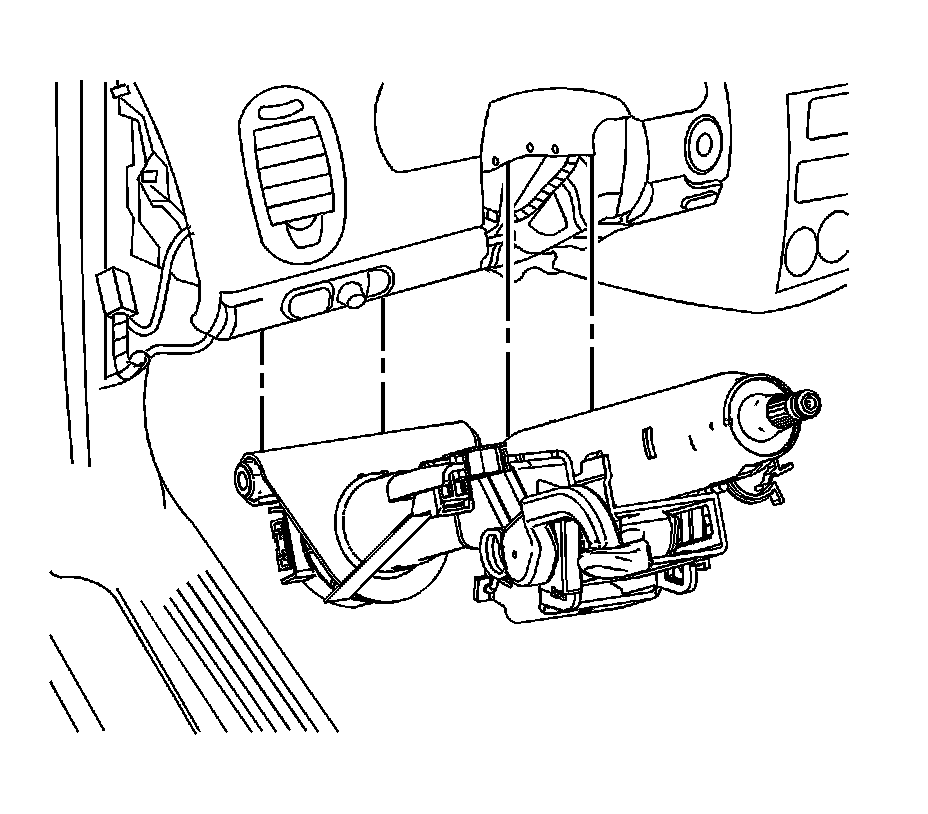Align the energy absorbing straps with the bolt holes in the steering column. Loosely install the upper steering column bolts (1).