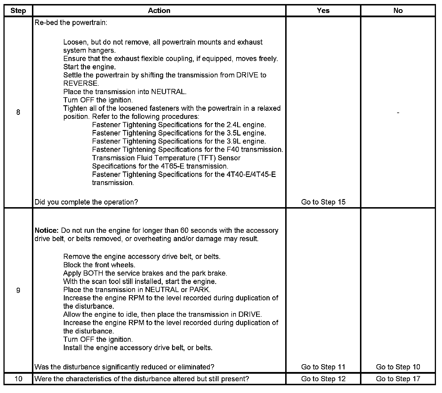 When loosening powertrain mounts in order to re-bed the powertrain observe the following:
