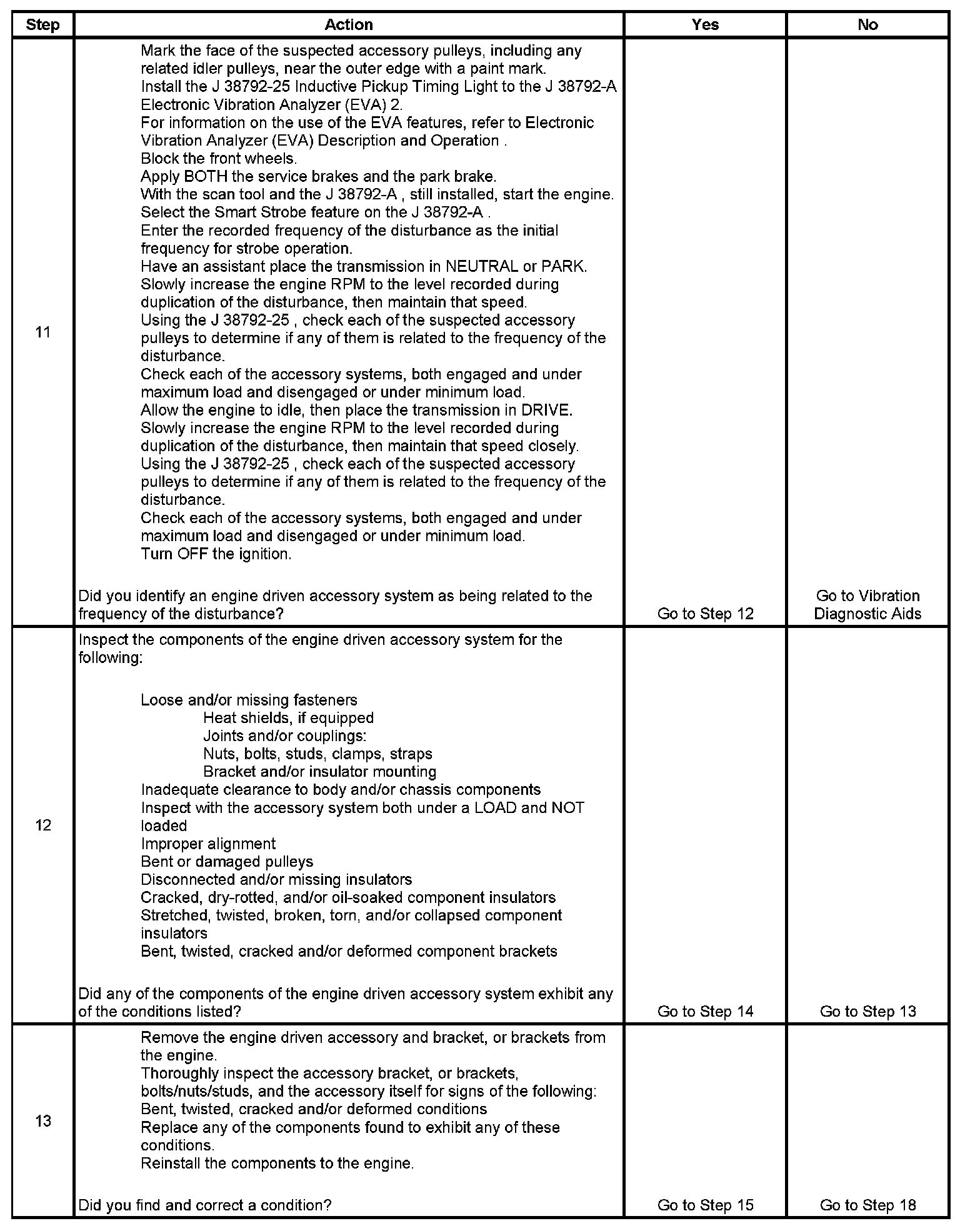 11. If the mark placed on the face of an engine driven accessory pulley seems to stand still while running this test, then that accessory system is either responding to an existing frequency, such as engine firing pulses, or creating a disturbance.