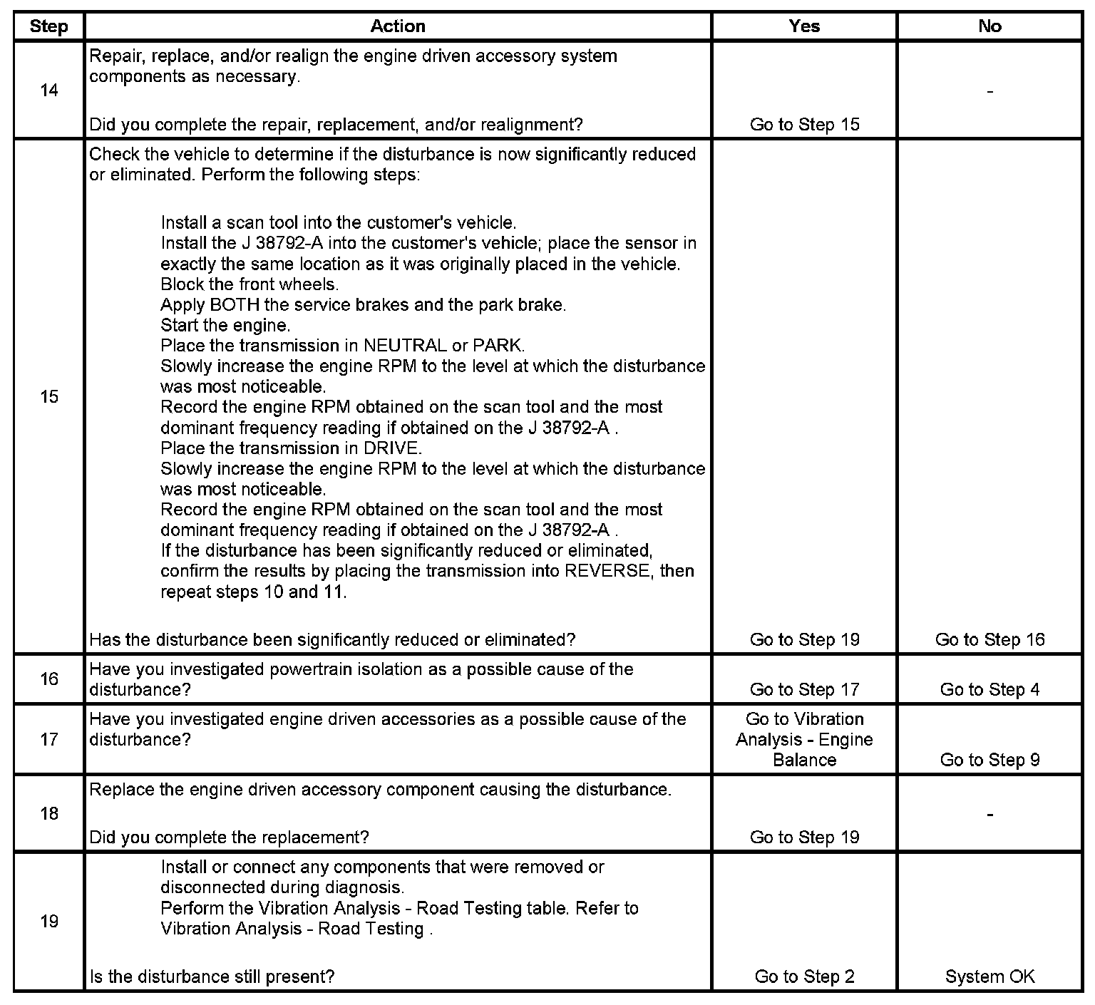 If a disturbance is still present, but the characteristics have NOT been altered, it is NOT likely that these component systems are acting as a transfer path for engine firing frequency or a first order engine disturbance.