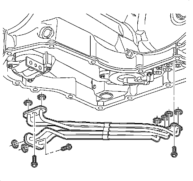 7. Remove the oil feed pipe assembly bolts and remove the assembly.