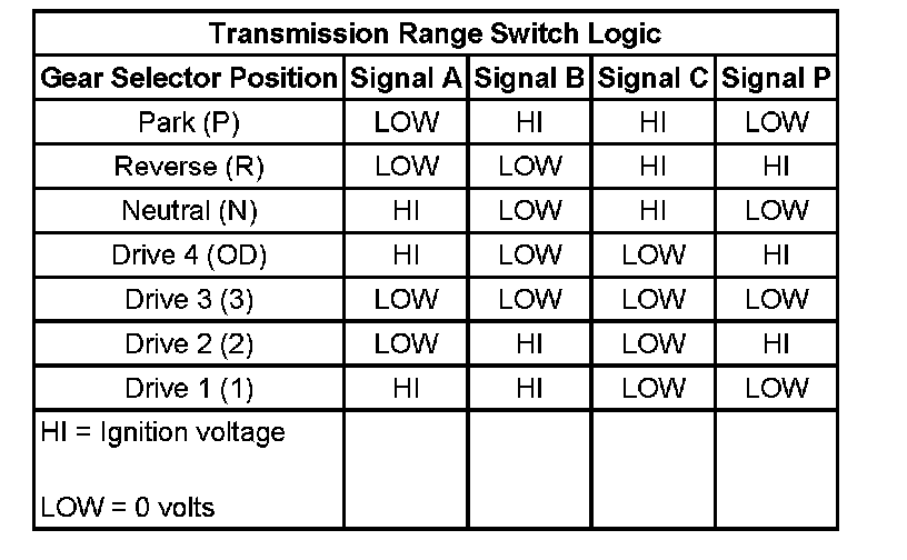 Transmission Range Switch Logic: