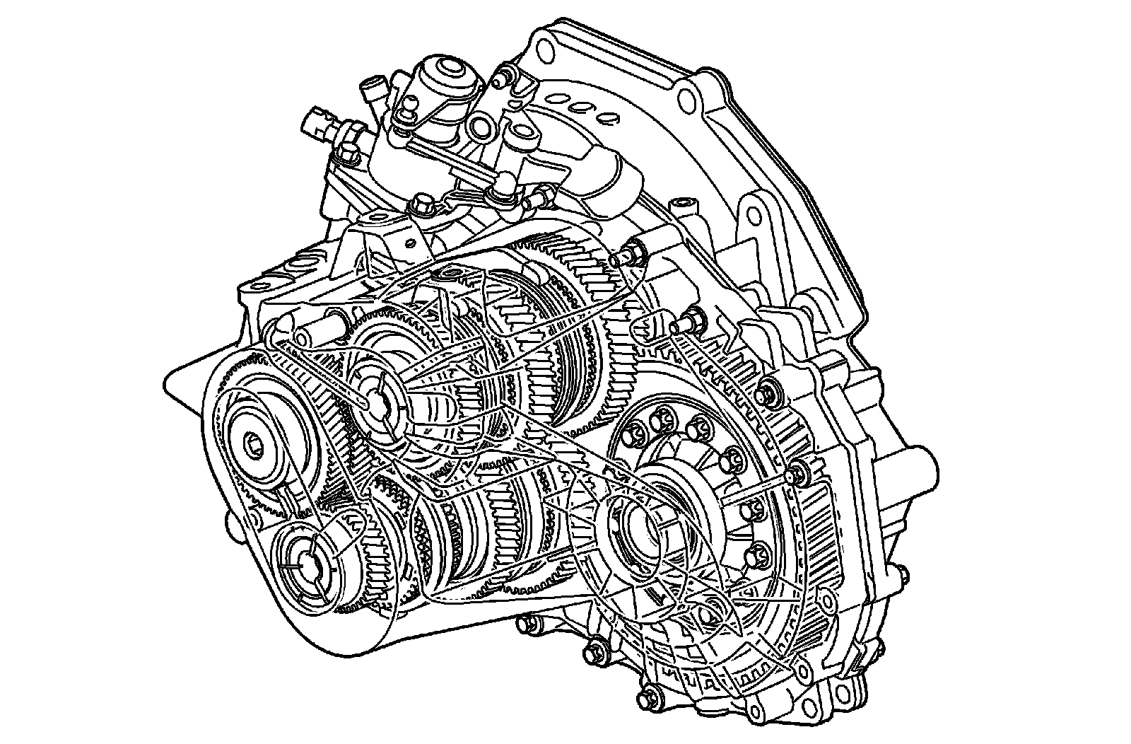 The gearbox has two output shafts. The lower shaft transfers power for 1st, 2nd, 5th, 6th and reverse gears. The upper output shaft transfers power for 3rd, 4th and reverse gears. This means that both intermediate shafts have a pinion gear that is constantly meshed with the crown wheel.