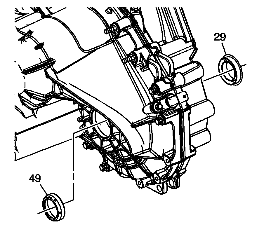 3. Remove the drive axle seals (29, 49).