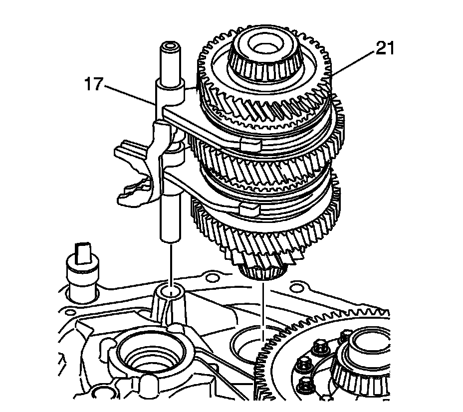 21. Remove the upper main shaft assembly (21) and the 3rd/4th and reverse fork assembly (17) together.