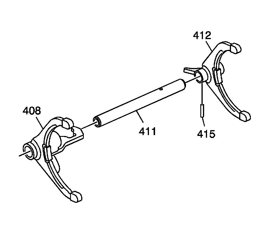 23. Remove the shift fork pin (415).