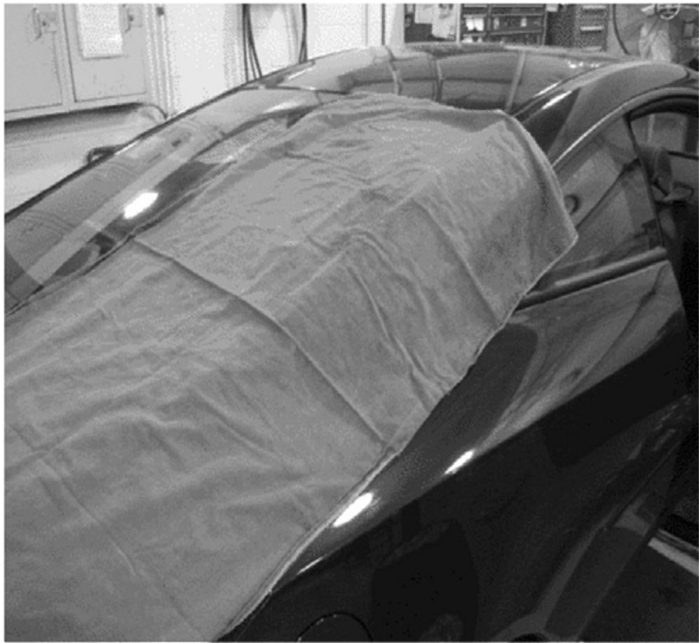 1. Place a shop towel or equivalent over the driver or passenger side of the rear window.
