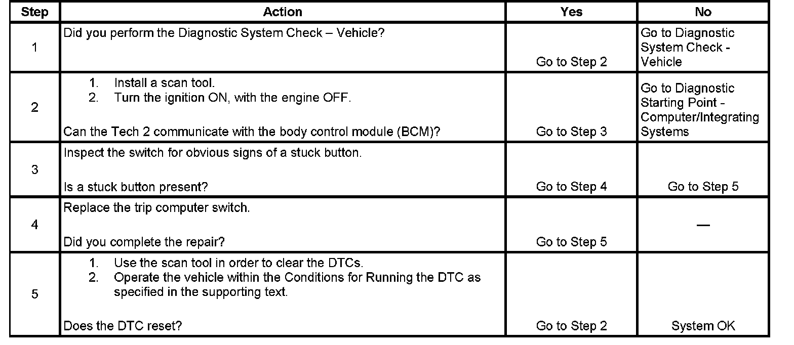 DTC 22 - TRIP COMPUTER SWITCH BUTTON STUCK