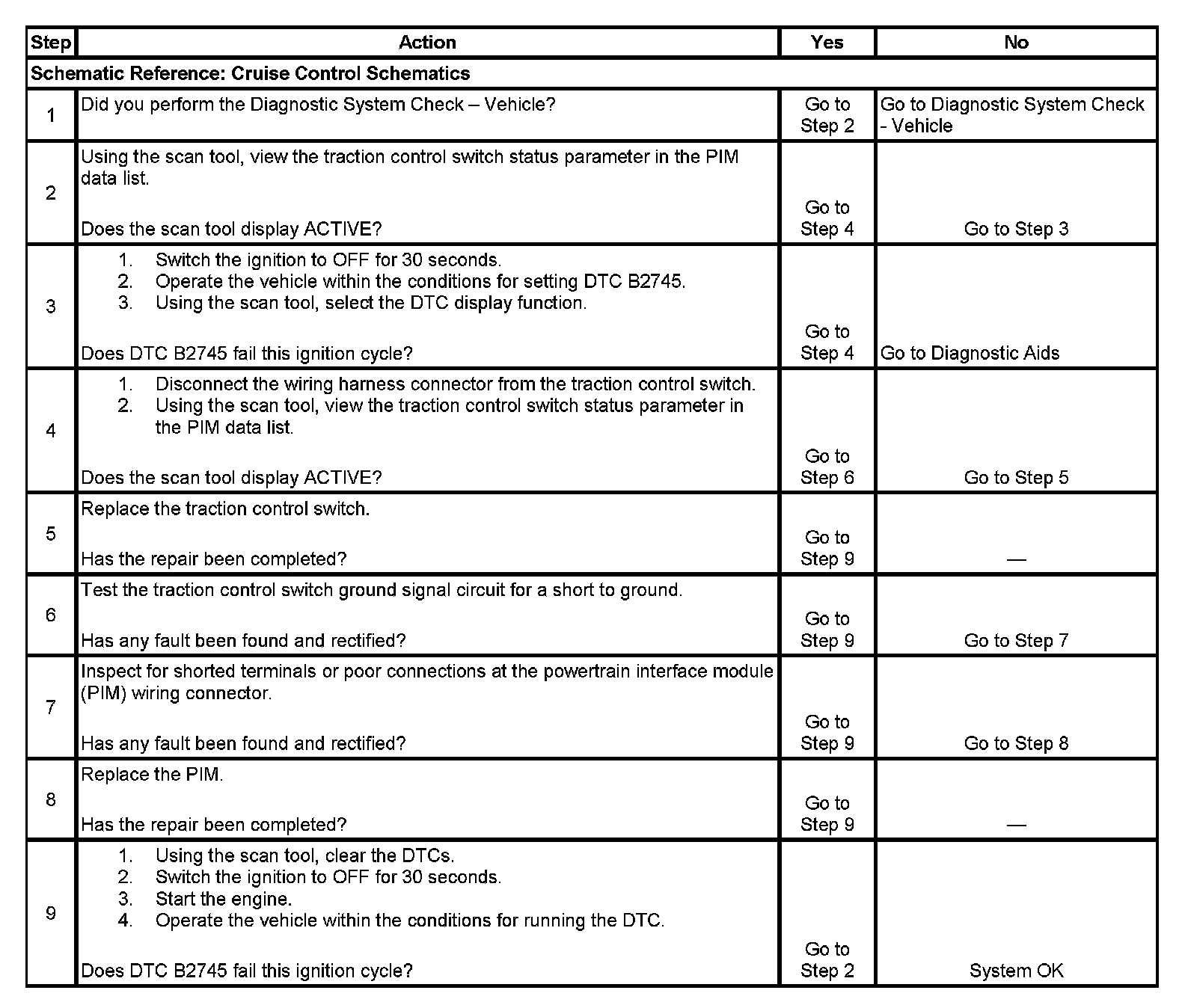 Refer to Cruise Control Description and Operation for cruise control switch description, operation and inspection procedures. Refer to Cruise Control Schematics, Cruise Control Component Views, and Cruise Control Connector End Views. Refer to Testing for Intermittent Conditions and Poor Connections for intermittent fault conditions.
