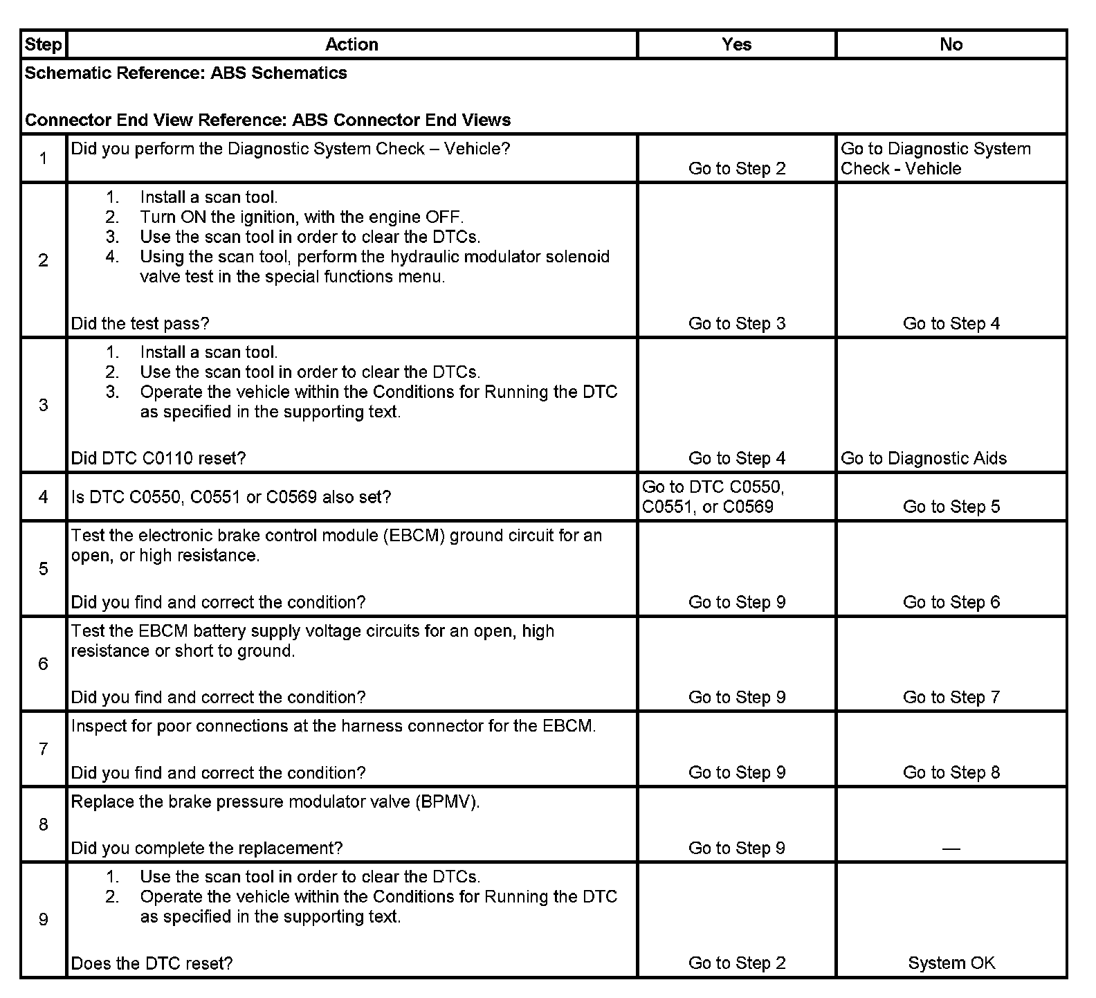 6. This step tests the battery supply voltage circuits of the EBCM for an open, high resistance or short to ground.