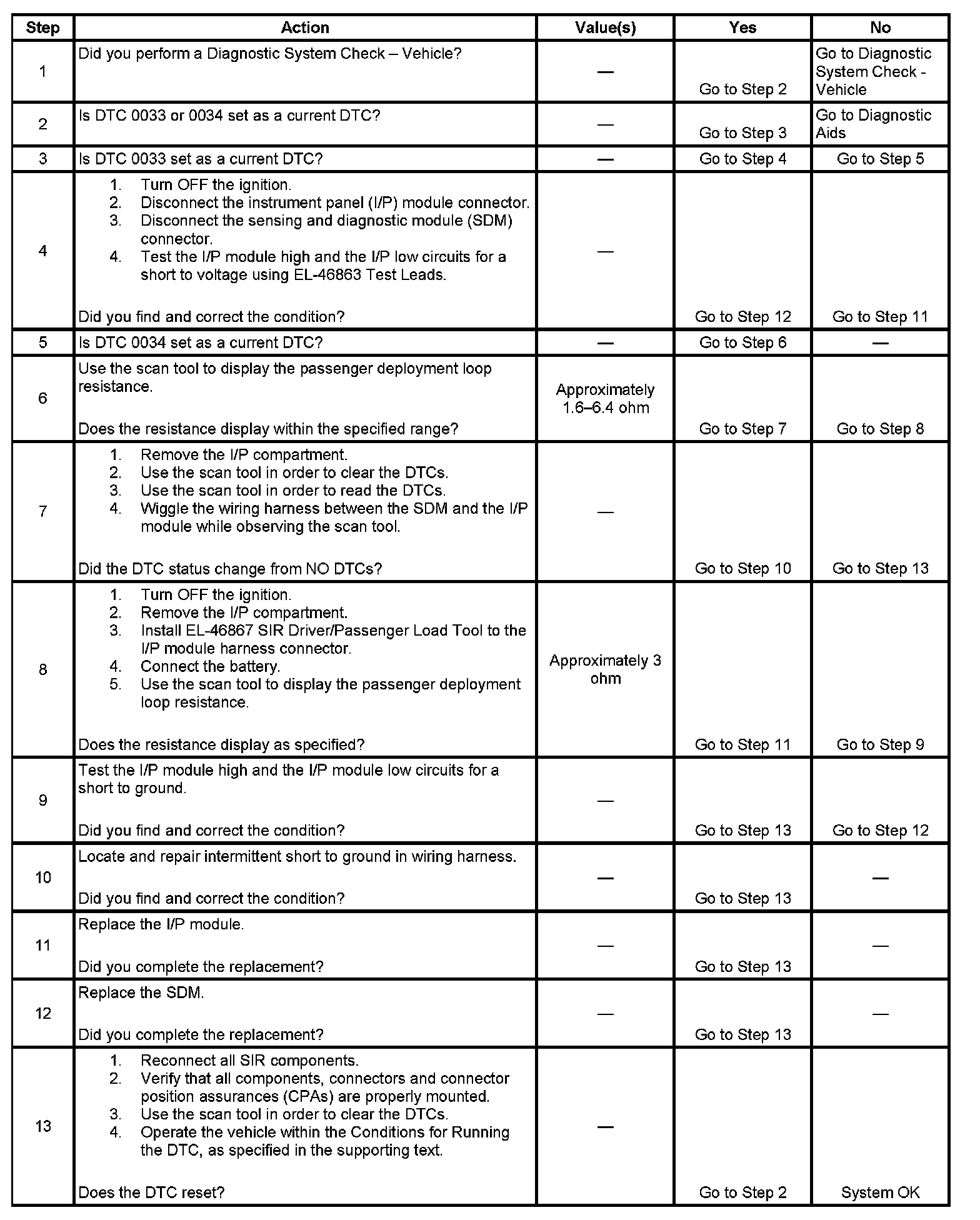 - DTC 0034 will set when the SDM detects a short to ground in the I/P module deployment loop.