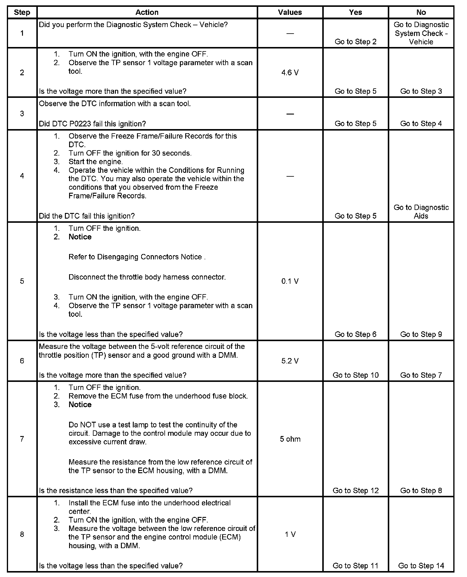 DTC P0123 Throttle Position (TP) Sensor 1 Circuit High Voltage