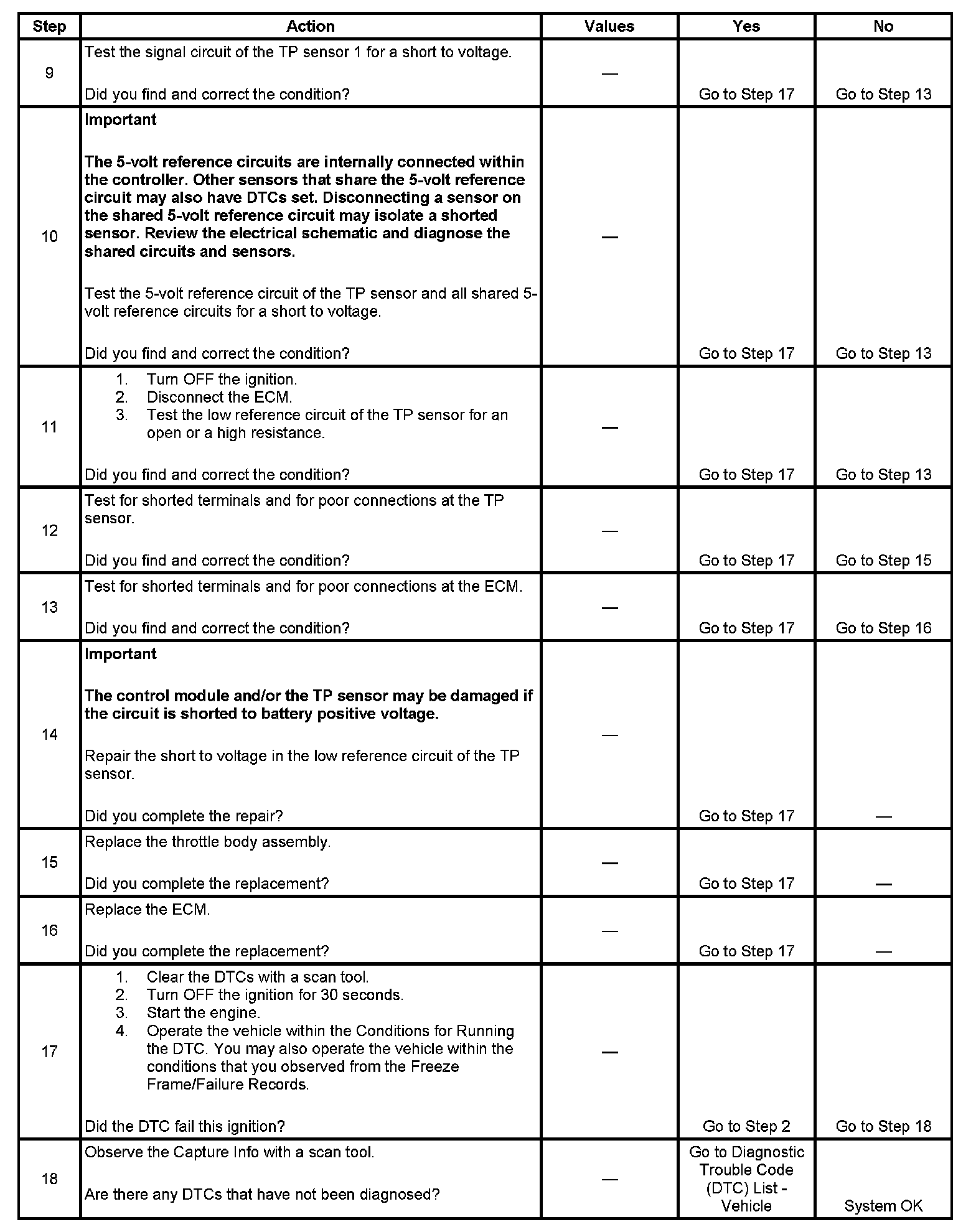 5. This step tests the signal circuit for a short to voltage. If the scan tool displays a voltage after the TP sensor is disconnected, the circuit is shorted to a voltage.