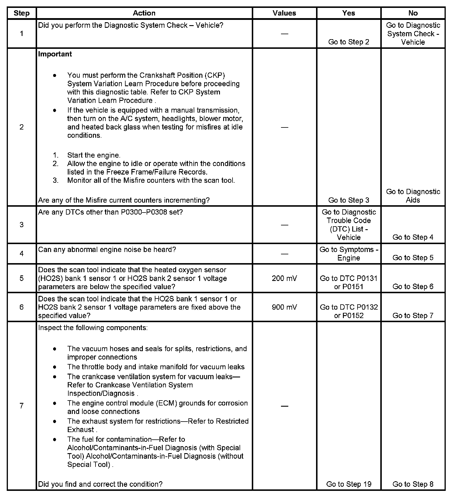 2. If the actual CKP variation values are not within the learned values, the misfire counters may increment.