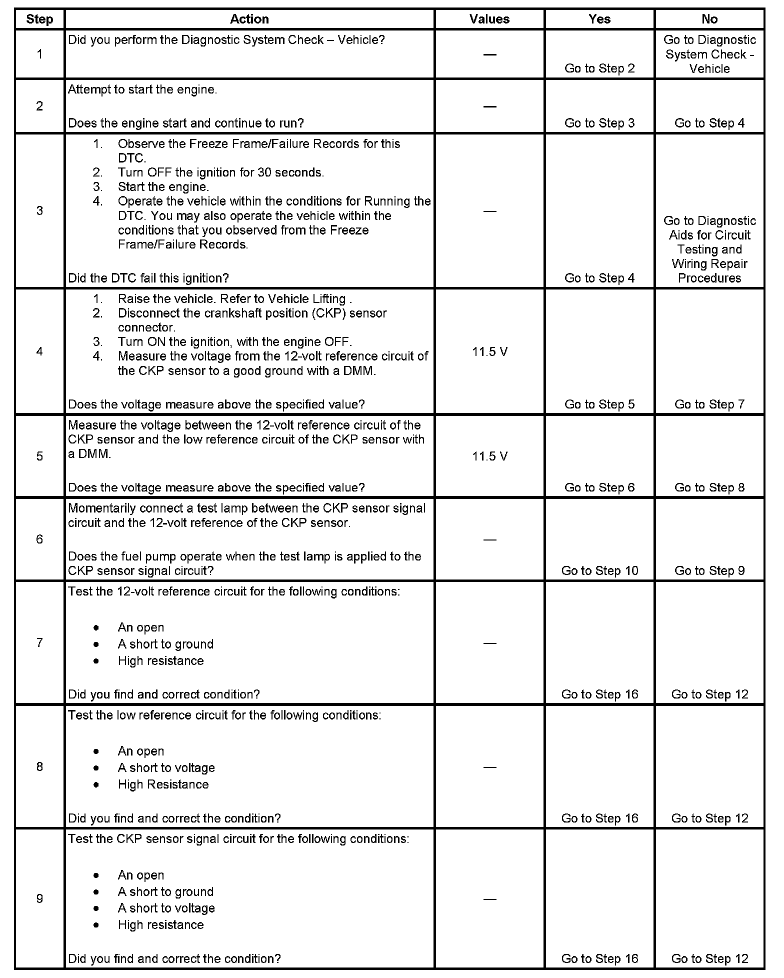 - The CKP sensor signal circuit
