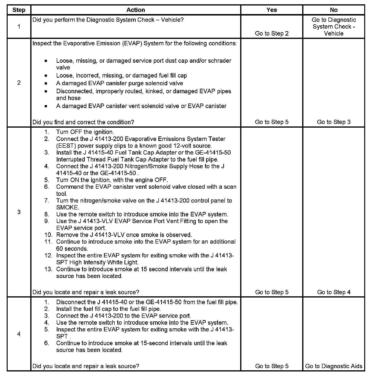 - To help locate intermittent leaks, use the J 41413-200 evaporative emissions system tester (EEST) to introduce smoke into the EVAP system. Move all EVAP components while observing smoke with the J 41413-SPT High Intensity White Light.