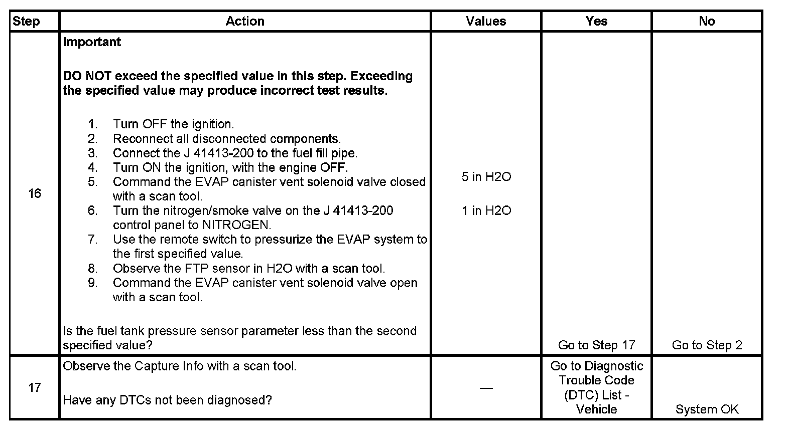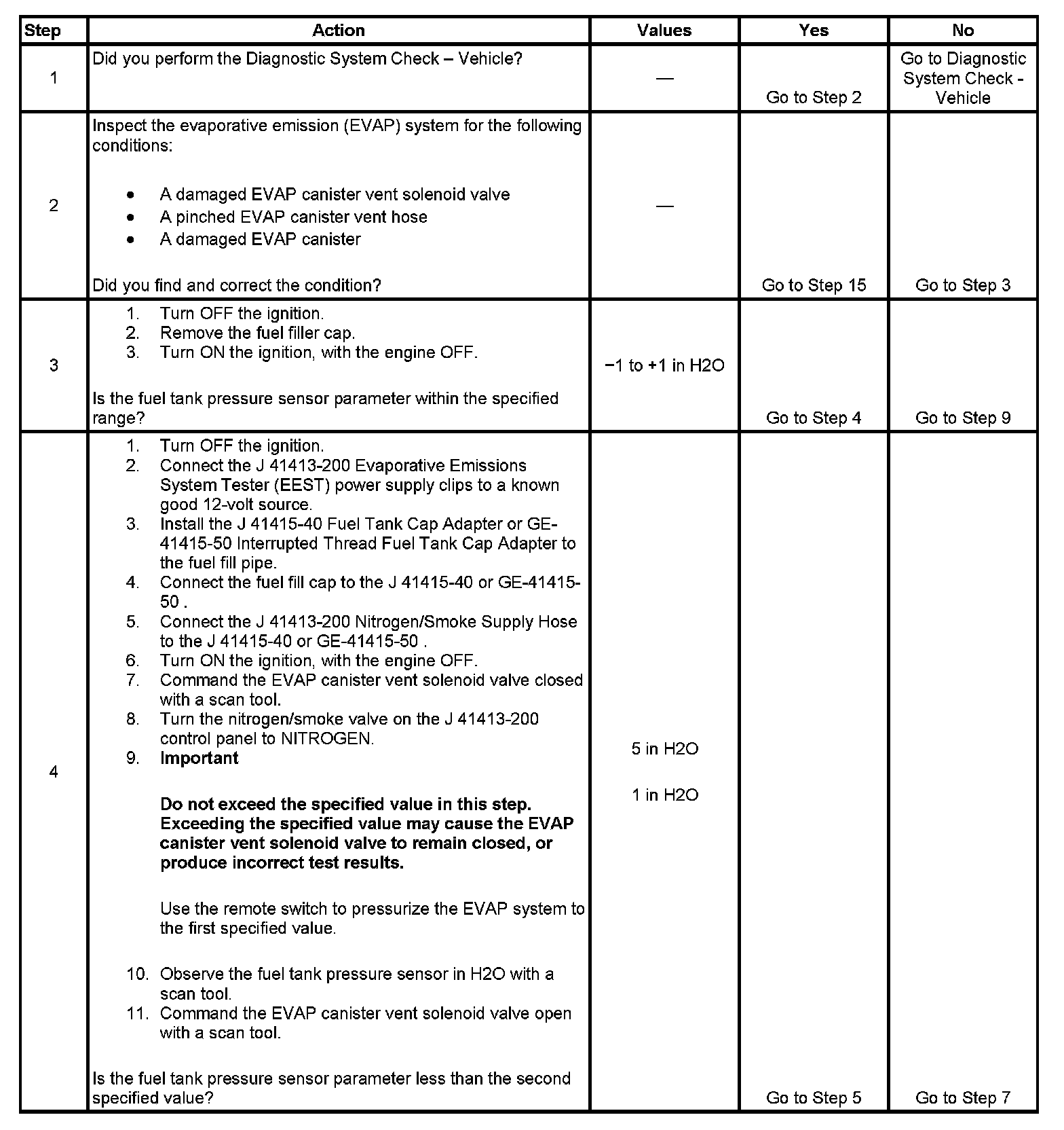 - When using the electronic emission system tester (EEST) to apply pressure, you can regulate the amount of pressure by activating the remote switch ON and OFF while observing pressure in the EVAP system using a scan tool. Do NOT use more than 5 inches H2O. More than 5 inches H2O applied to the EVAP system can cause the canister vent solenoid valve to temporarily remain in the closed position, which could lead to misdiagnosis in this procedure.