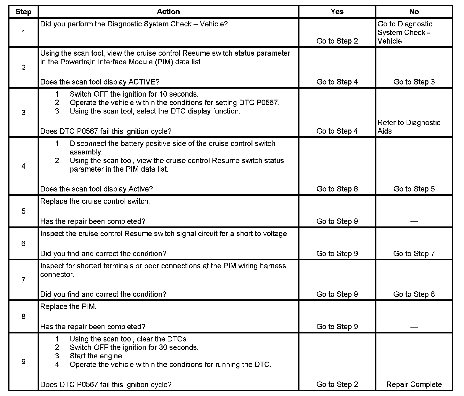 DTC P0567 Cruise Control Resume Signal Malfunction