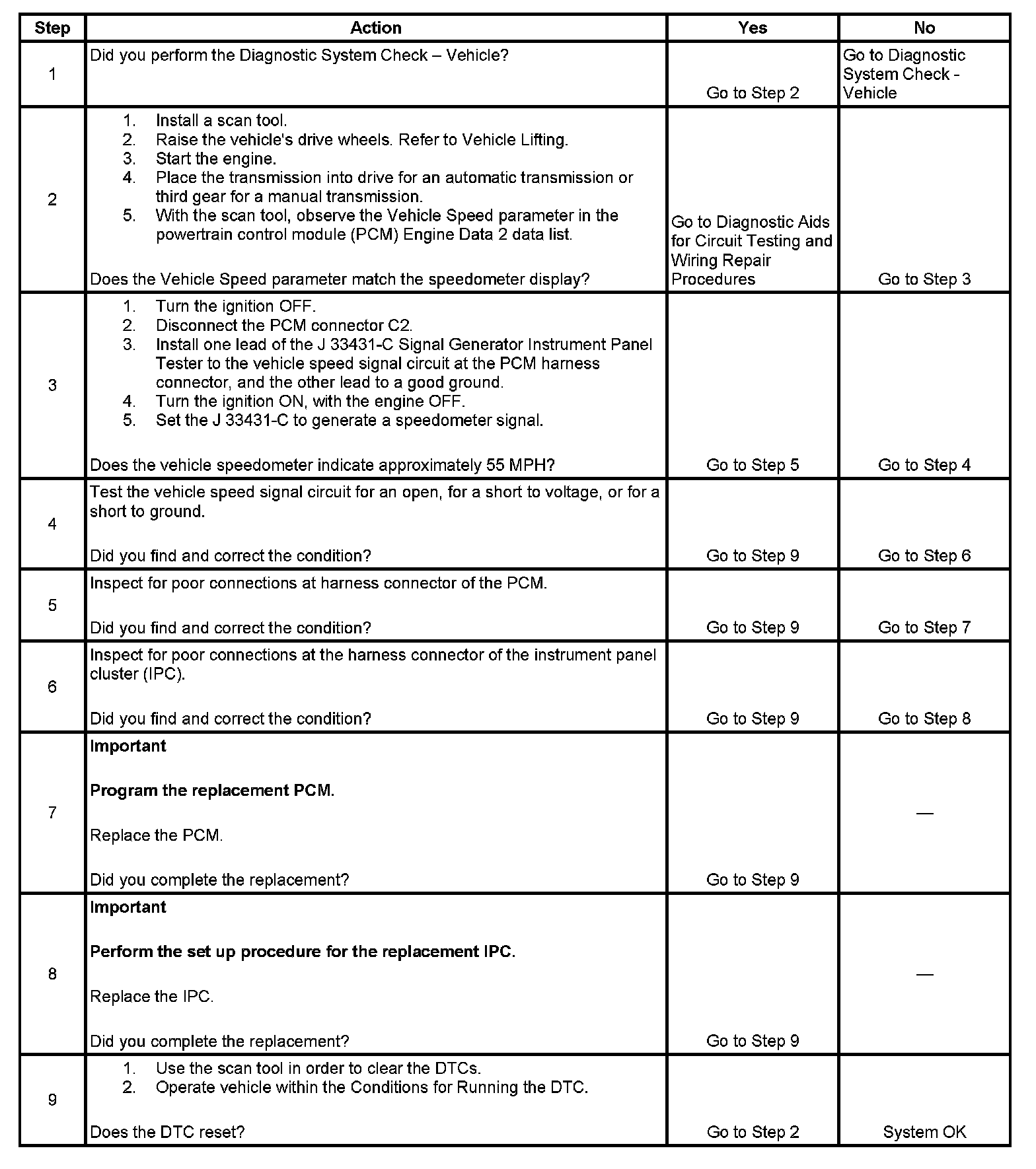The powertrain control module (PCM) creates the vehicle speed output signal by pulsing the circuit to ground. The PCM monitors the voltage on the vehicle speed output circuit. If the PCM determines that the voltage is out of the normal operating range, a DTC sets.
