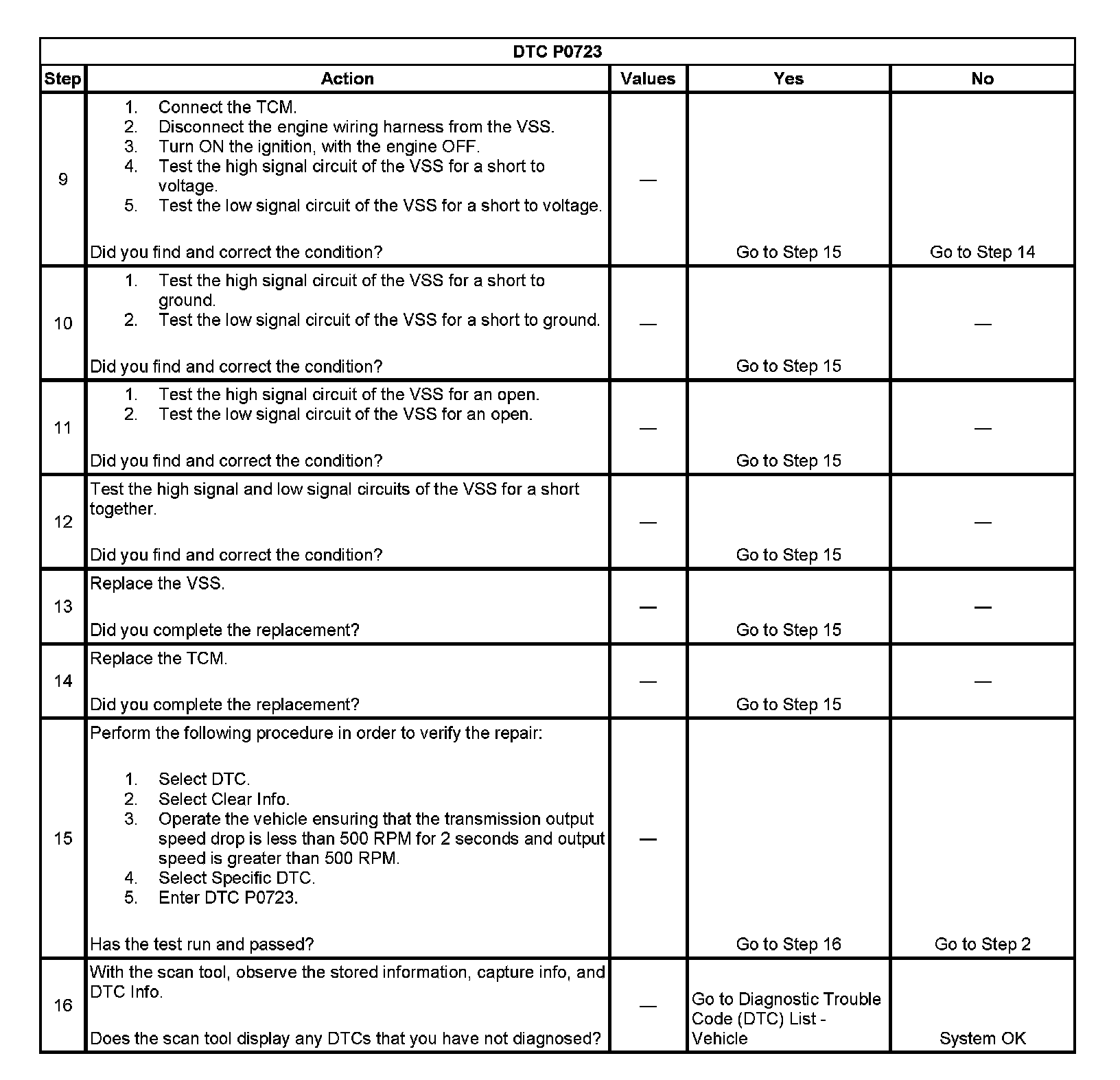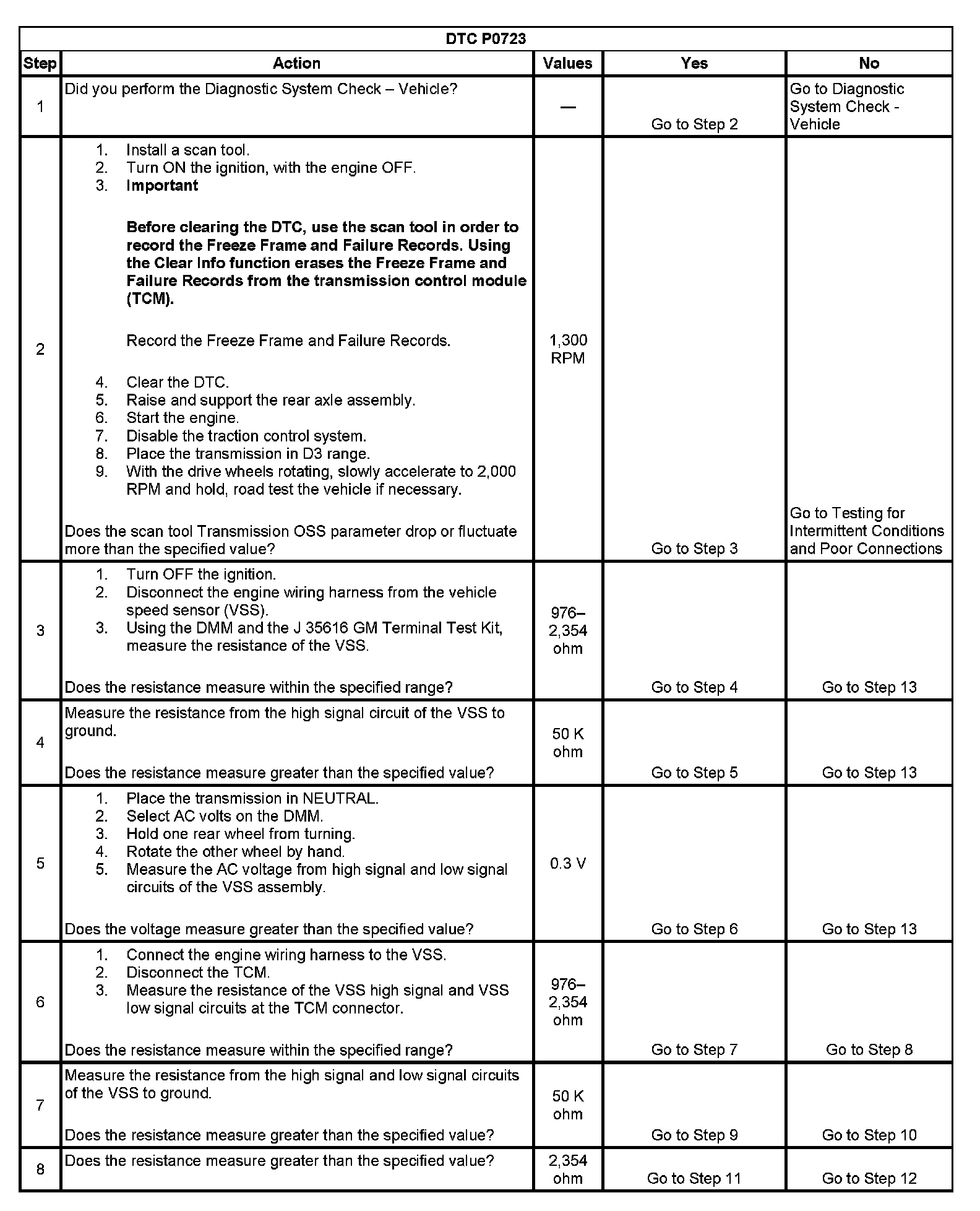 ^ The TCM stores DTC P0723 in TCM history.