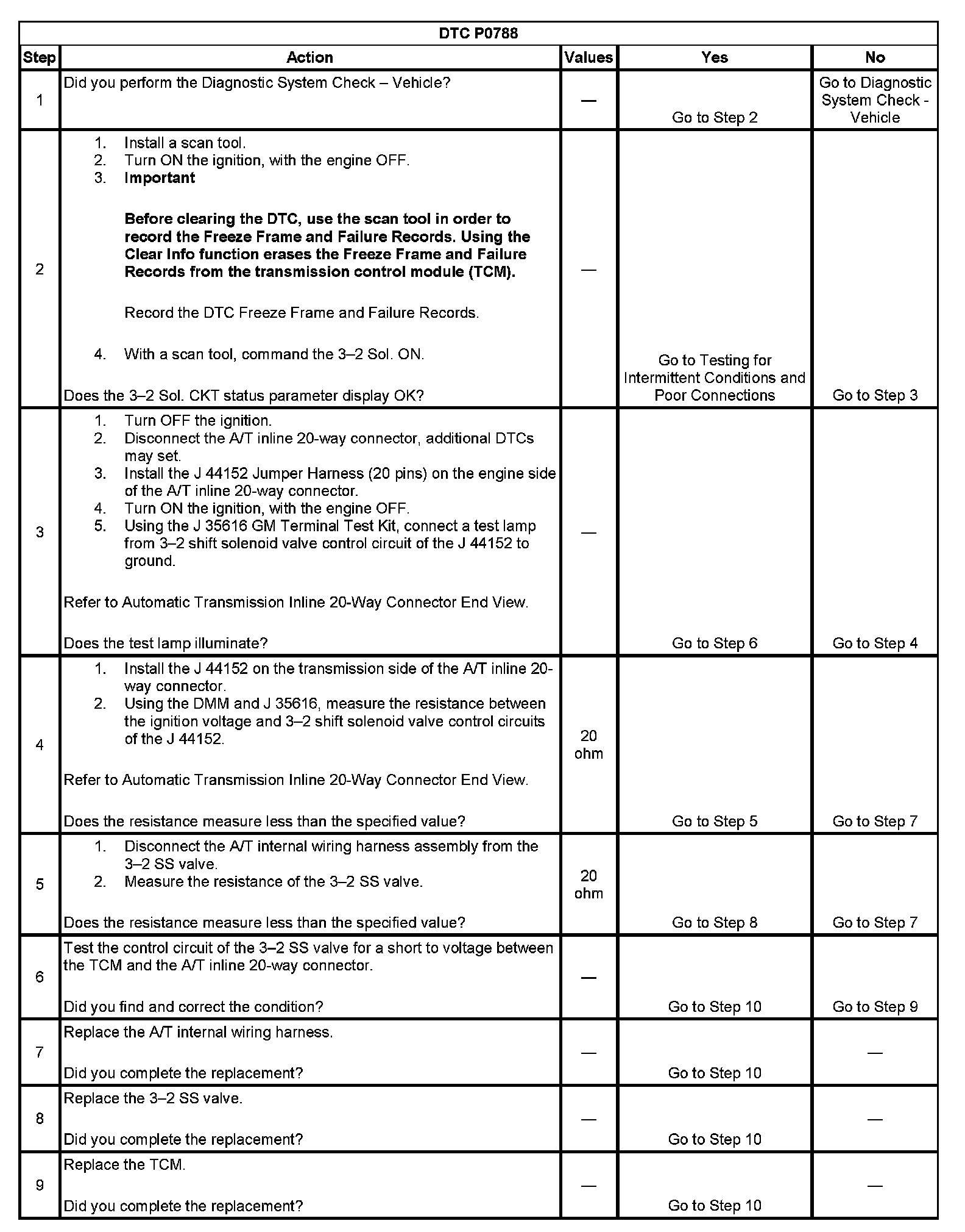When the TCM detects a continuous short to voltage in the 3-2 shift solenoid valve control circuit, then DTC P0788 sets. DTC P0788 is a type A DTC.