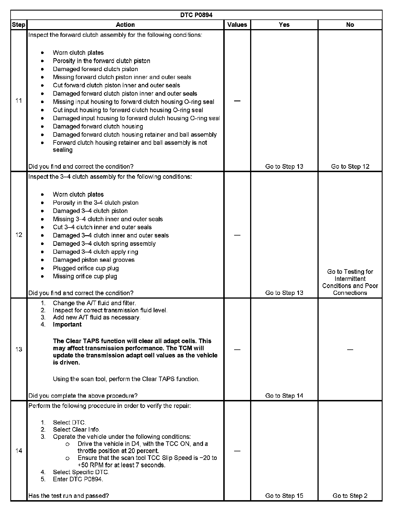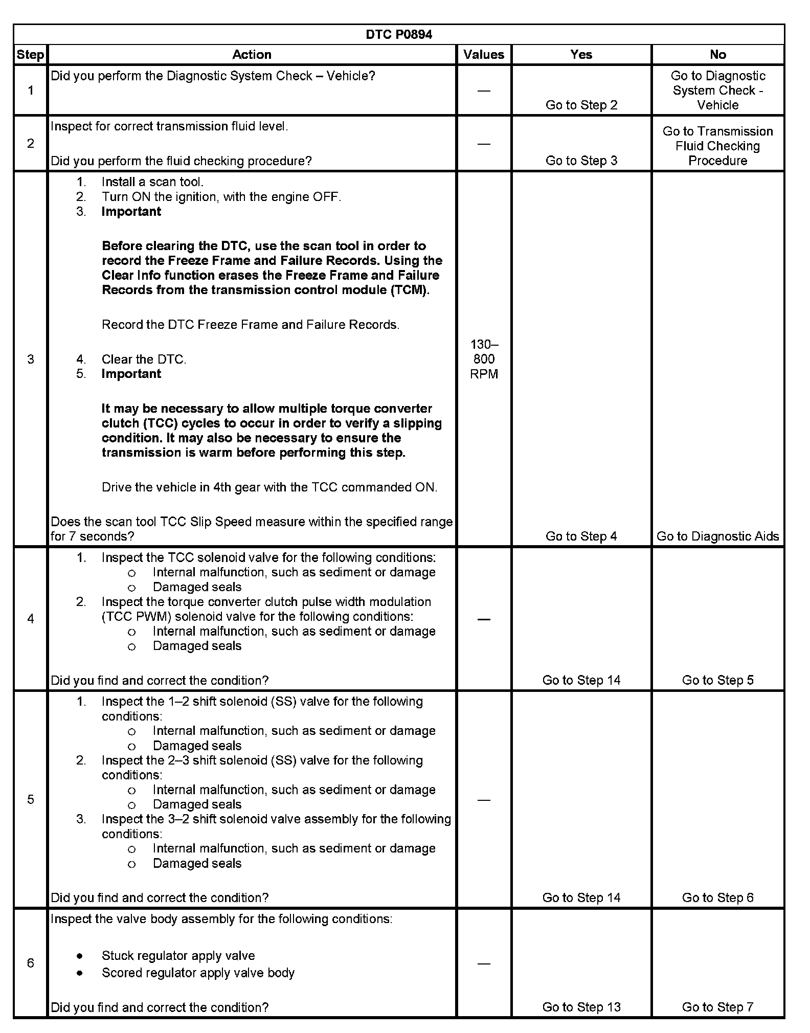 When the TCM detects excessive TCC slip when the TCC should be engaged, then DTC P0894 sets. DTC P0894 is a type B DTC.
