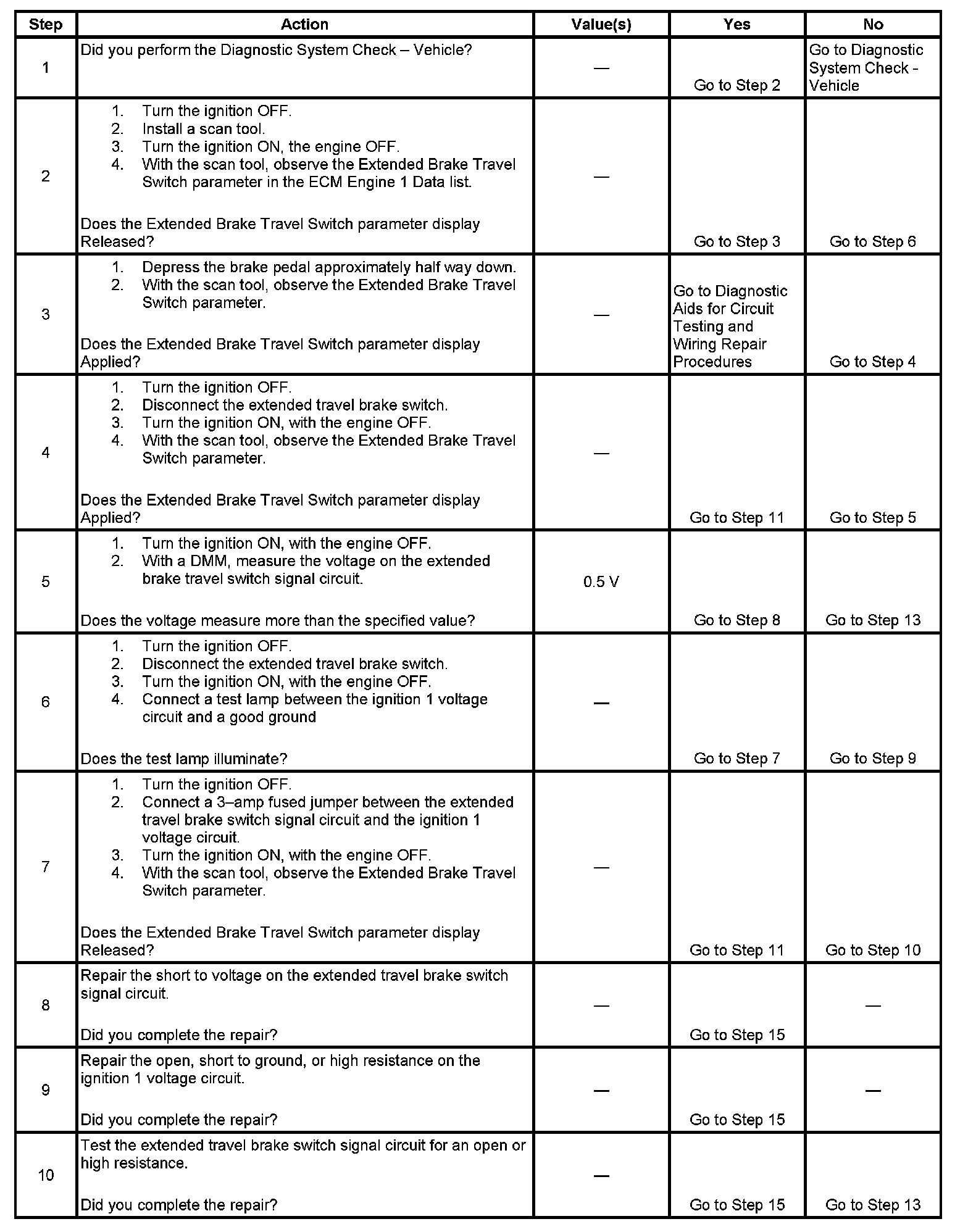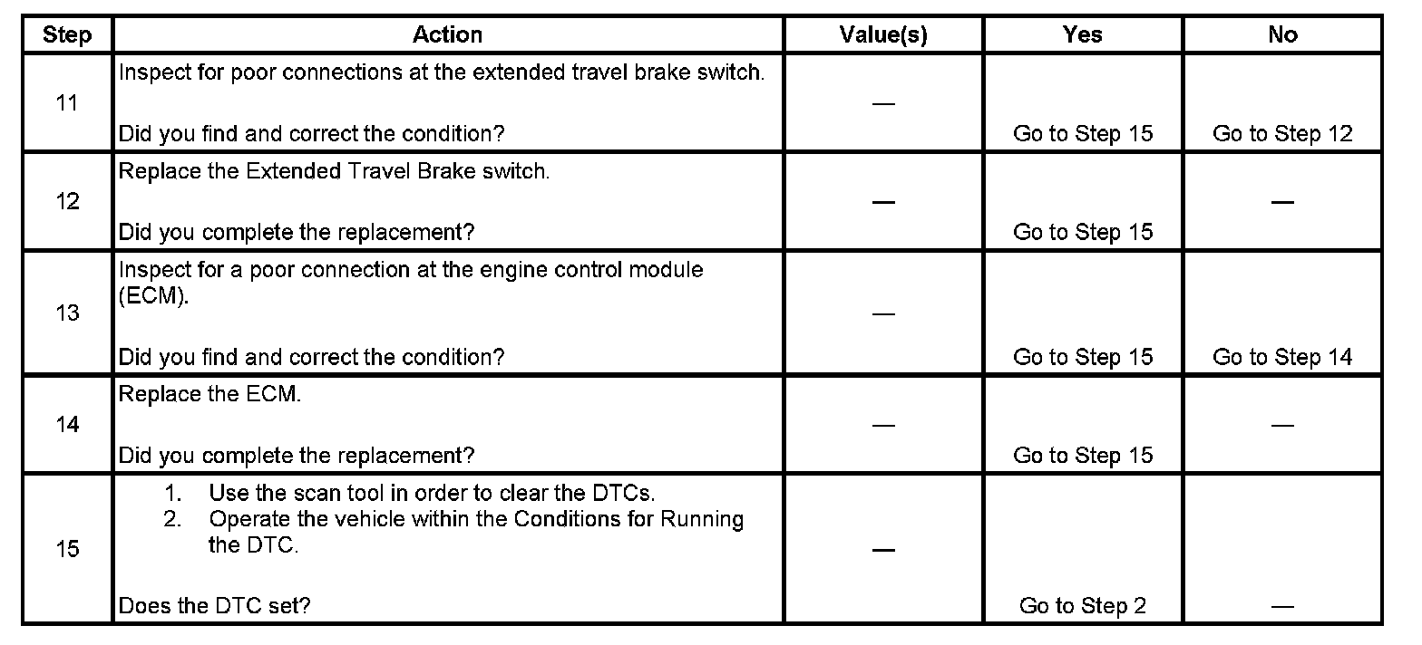 An improperly adjusted extended travel brake switch may cause this DTC to set. In order to avoid misdiagnosis, verify that the extended travel brake switch is properly adjusted. Refer to Stop Lamp Switch Adjustment in Lighting Systems.