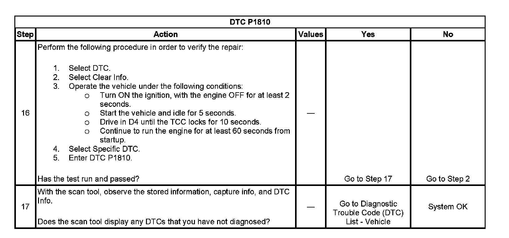 ^ The TCM stores DTC P1810 in TCM history during the second consecutive trip in which the Conditions for Setting the DTC are met.