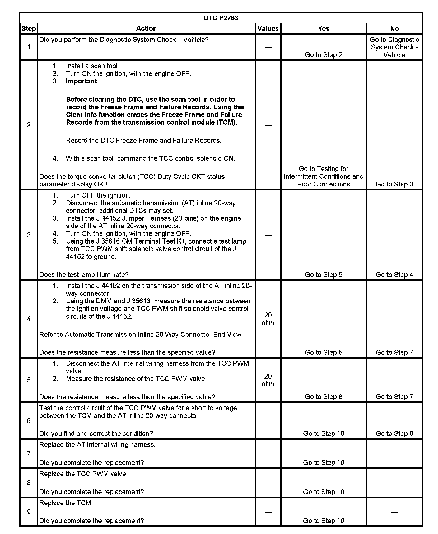 DTC P2763 Torque Converter Clutch (TCC) Pressure Control (PC) Solenoid Control Circuit High Voltage