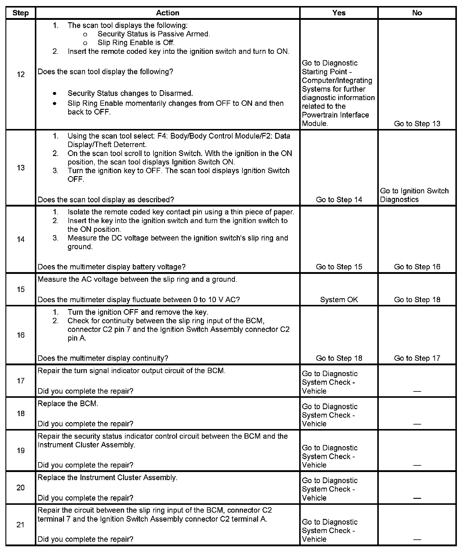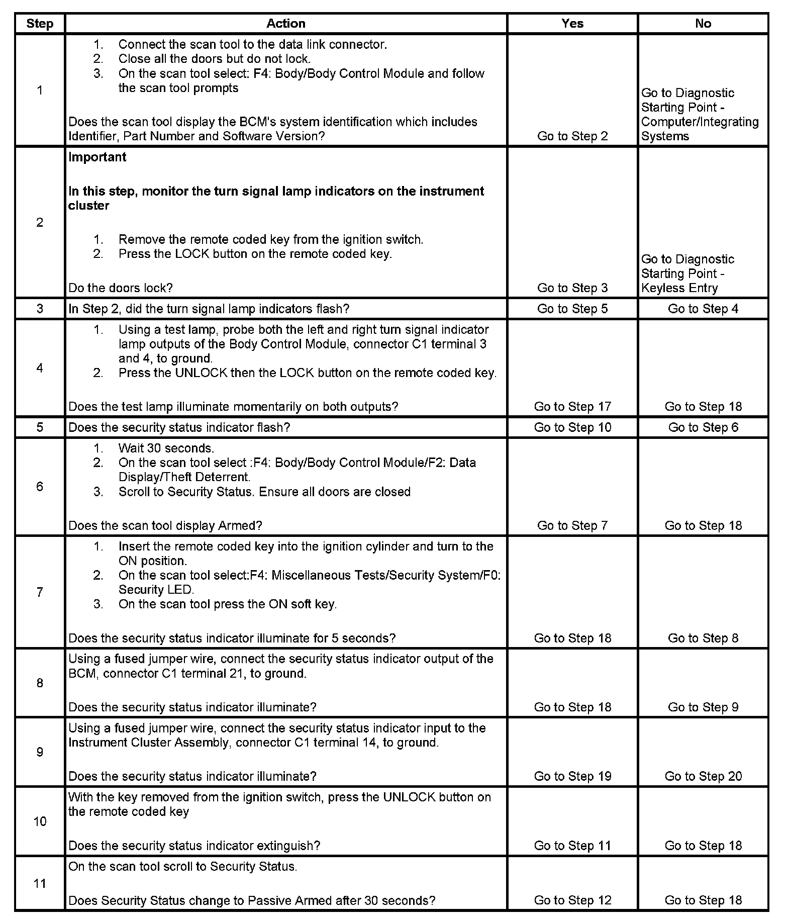 6. This step tests if the theft deterrent system is armed. Isolates whether the BCM is at fault.