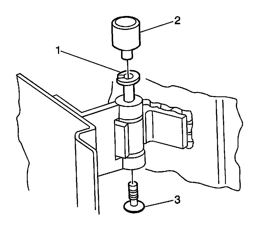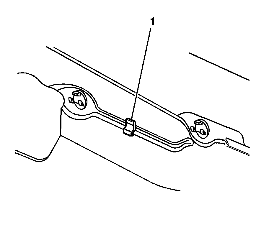 14. Remove the filler assembly retainer (1) from the rear inner sealing strip filler assembly (2).