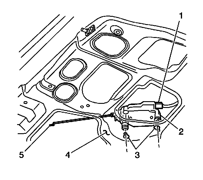 4. Disconnect the connecting rod (5) from the rear compartment lid latch assembly, if necessary.